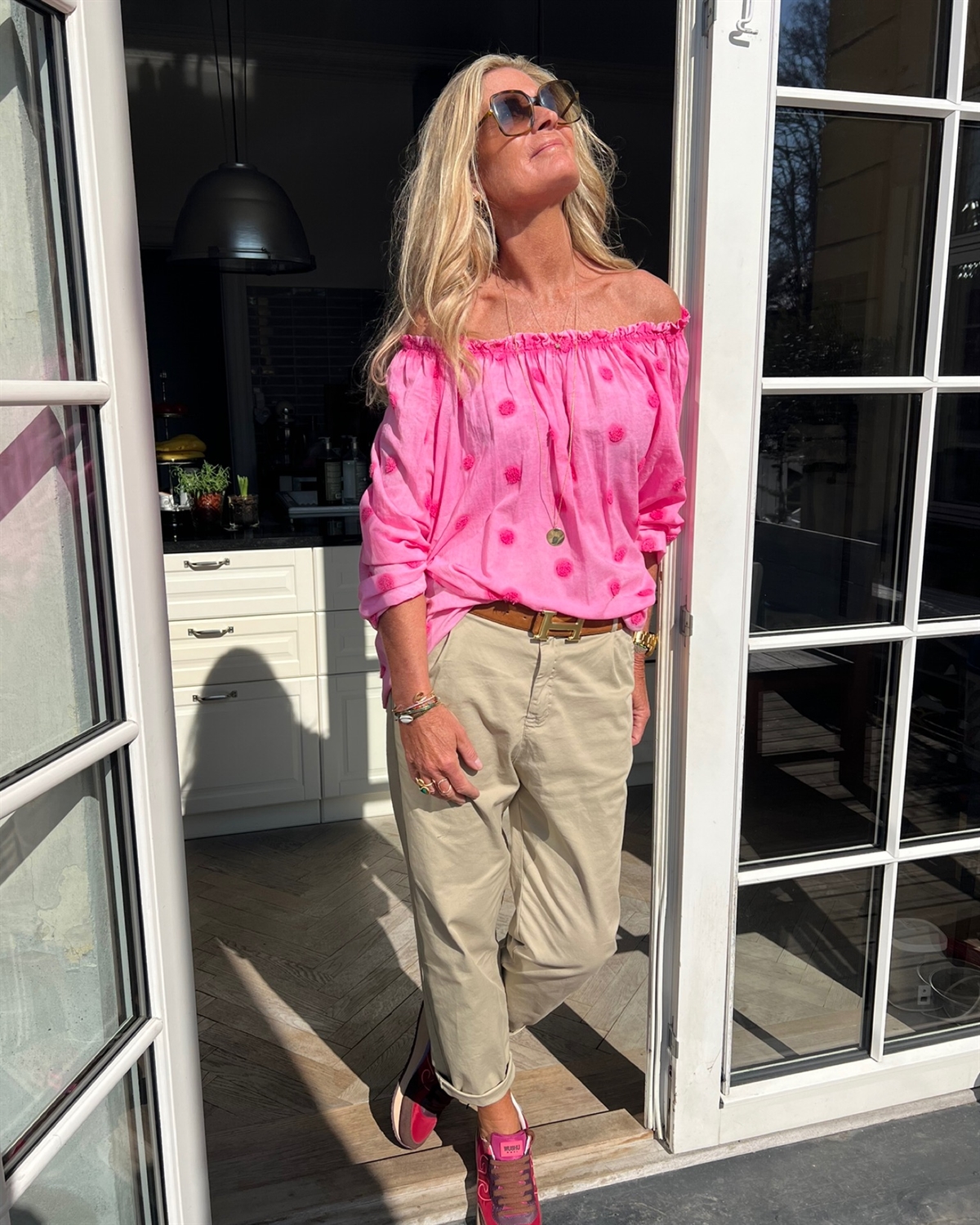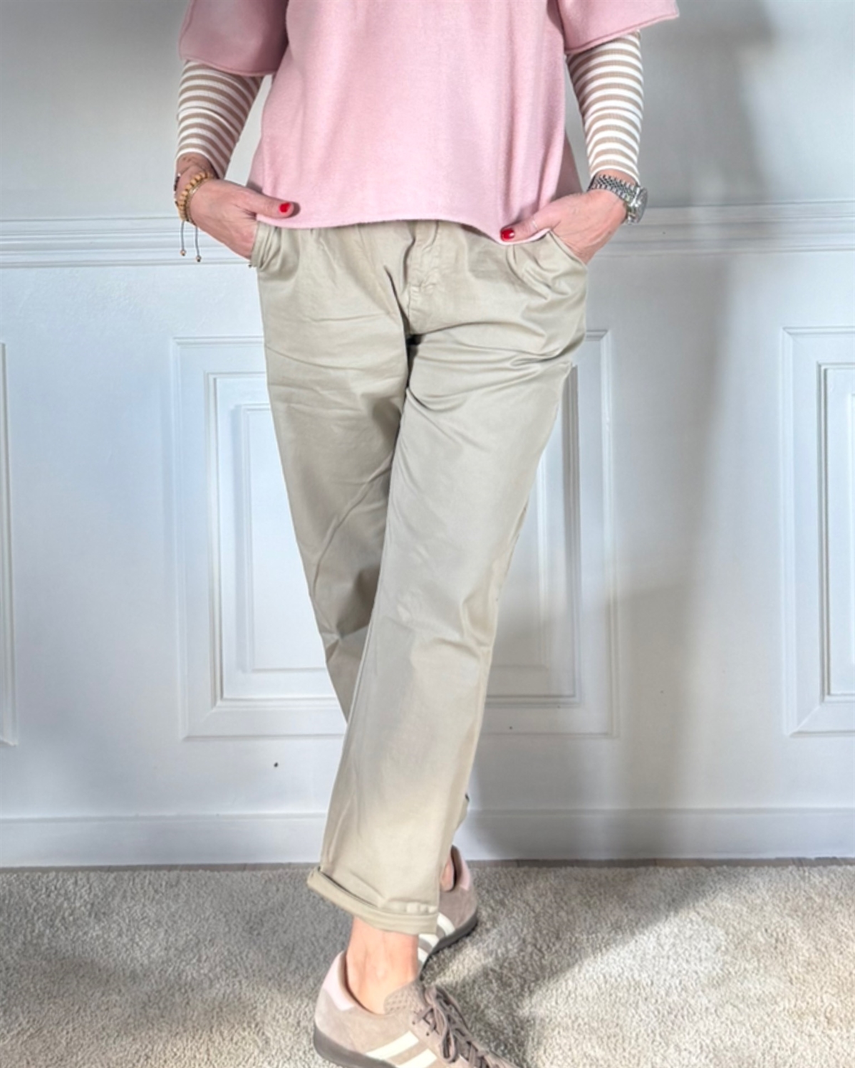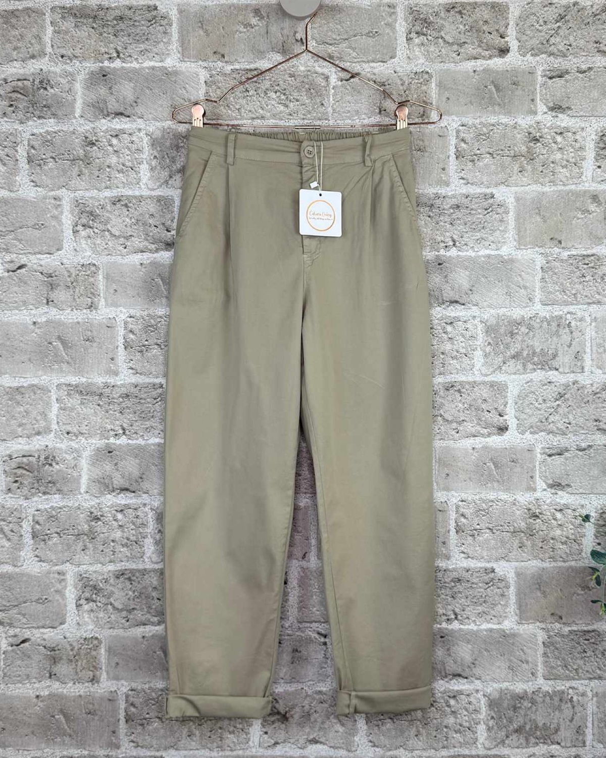 Chinos fra Cabana Living, bæltestropper og elastik i lænd.