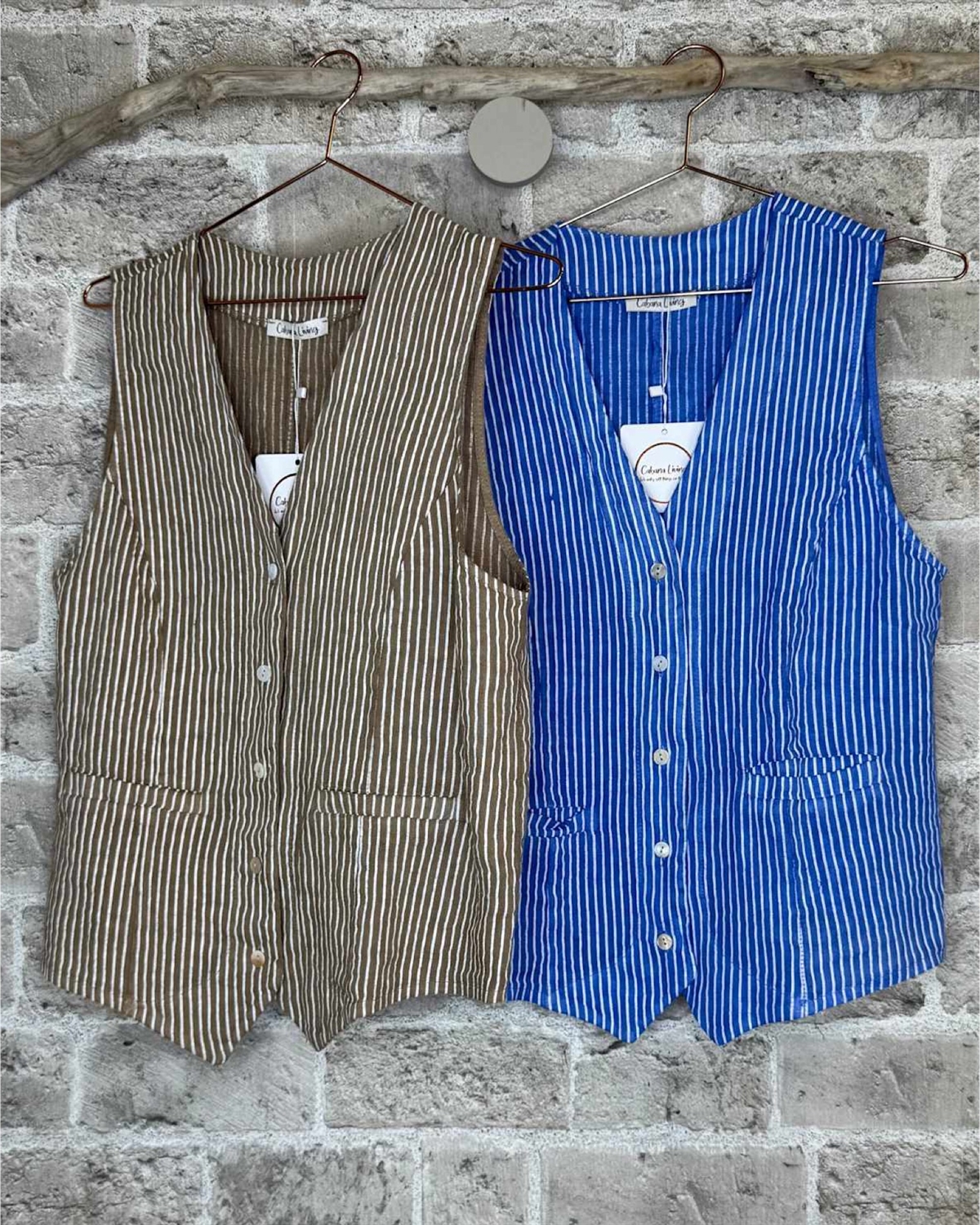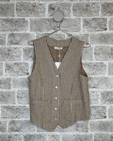Smart Stribet Hørvest fra Cabana Living. Tilføj et stilfuldt og unikt touch til din garderobe med denne smarte stribede hørvest fra Cabana Living. Vesten er lavet i let og åndbart hørmateriale, der både er komfortabelt og trendy. Den stribede detalje giver et moderne look, som nemt kan styles over en skjorte, t-shirt eller kjole for et lag-på-lag udtryk. Perfekt til både hverdag og afslappede sommerdage. Et alsidigt item, der passer til enhver stilbevidst kvinde!