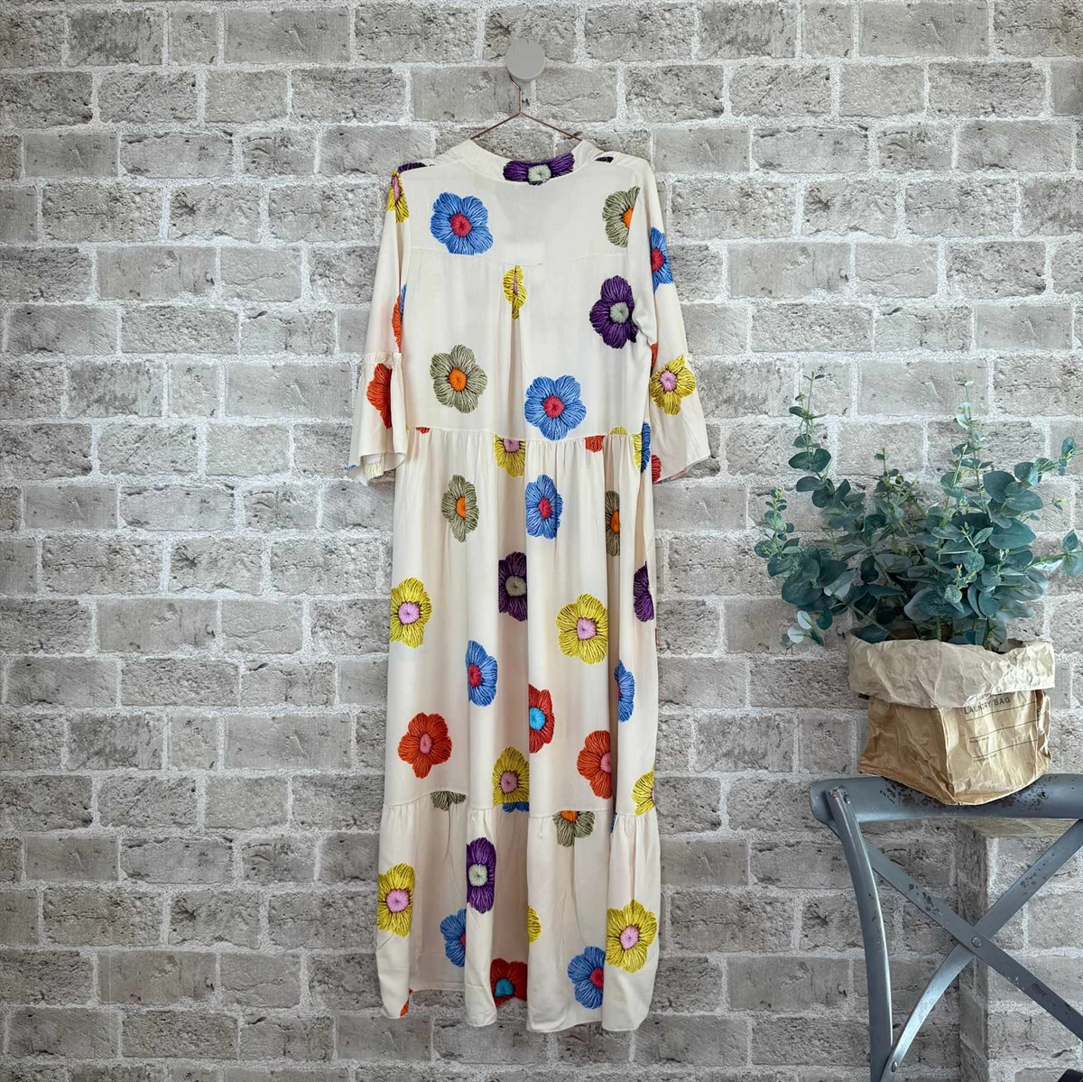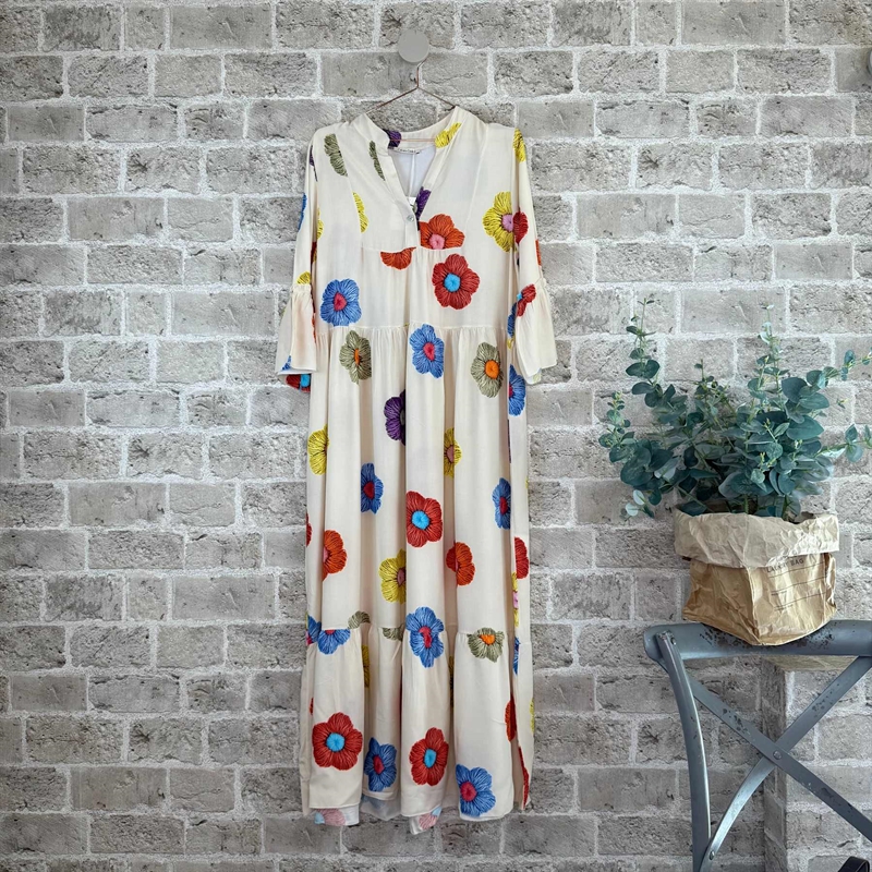 Giv din sommerstil et farverigt boost med Cabana Living Gry 8822 kjolen – en uimodståelig maxikjole med festlige, blomsterprint, der sætter liv i enhver garderobe. Den løse og luftige pasform sikrer komfort hele dagen, mens de 3/4-ærmer og flæsedetaljer giver et feminint og afslappet udtryk. Perfekt til både strandture, feriestemning og sommerens mange fester. Denne kjole er et stilsikkert valg, når du vil føle dig både elegant og ubesværet cool.