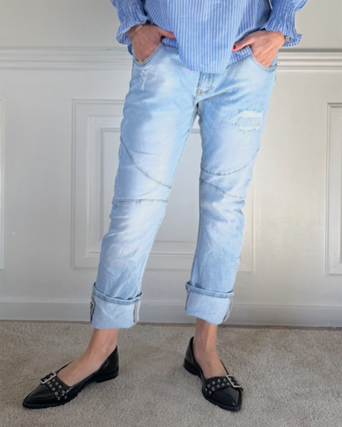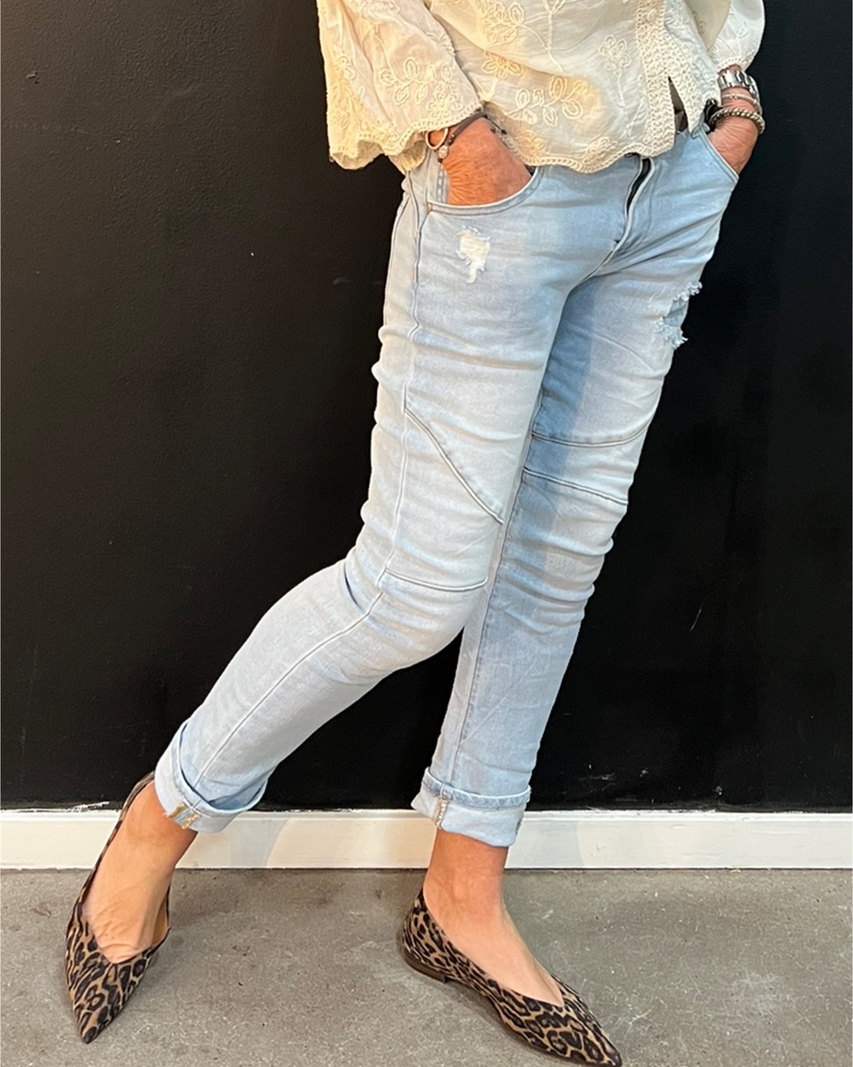 Cabana Living jeans – Lys denim. Disse lækre jeans fra Cabana Living er i en smuk lyseblå farve, med et slidt look, samt smukke fisfarvninger, som er en lækker detalje. Disse Cabana Living jeans kan styles med en hvid T-shirt, og evt. med en grå sweatshirt over, sammensæt med et par brune støvler.