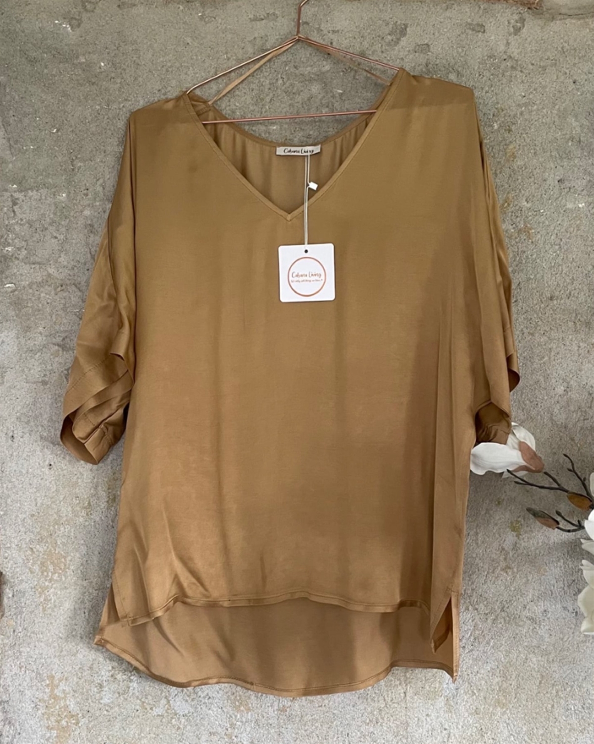 Cabana Living Kimolos 45012 Gold Satin V-Neck blouse