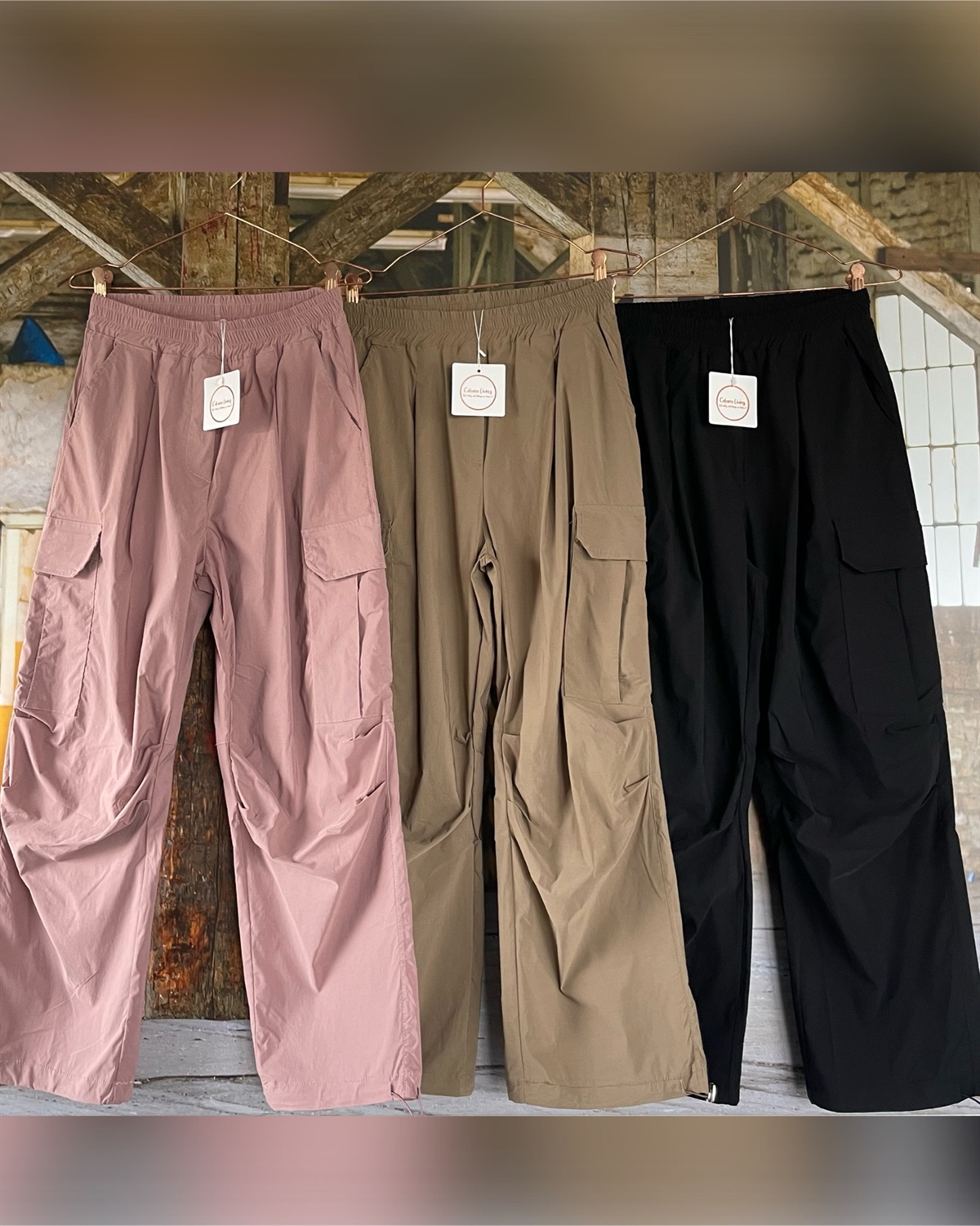 Skønne cargo bukser med elastik i taljen, Større ved forde samt lommer på lår.