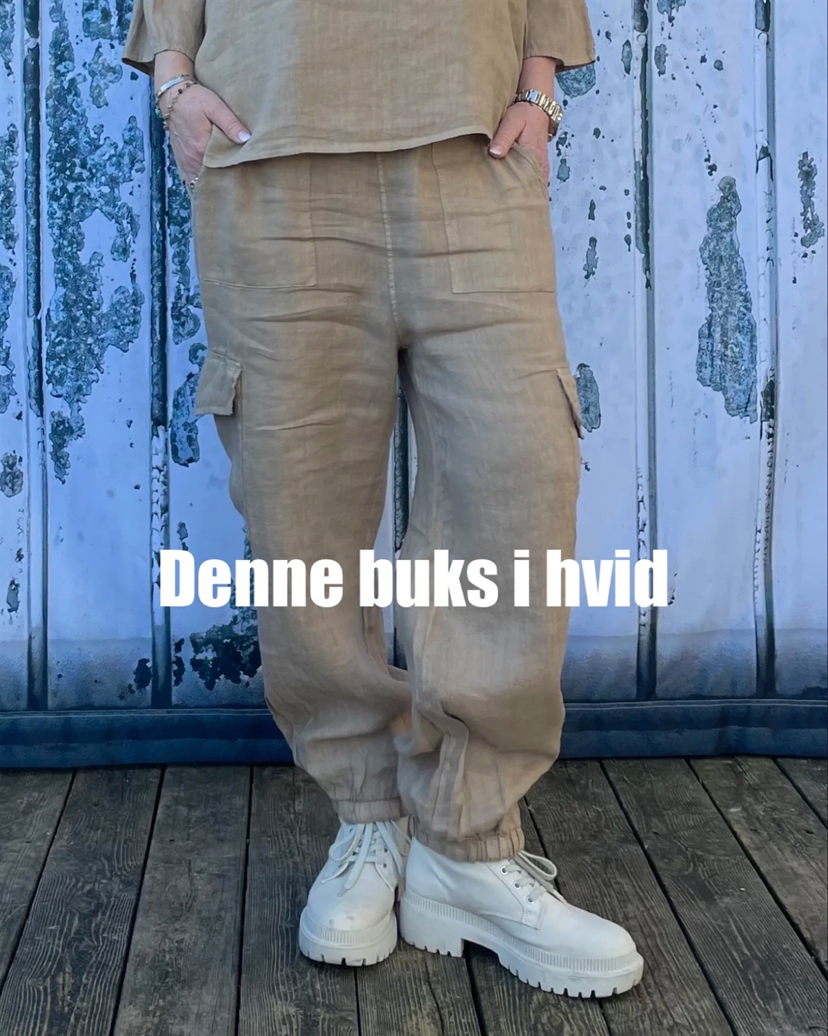 Cabana Living Cargo Hørbukser med lårlommer og elastik i taljen.