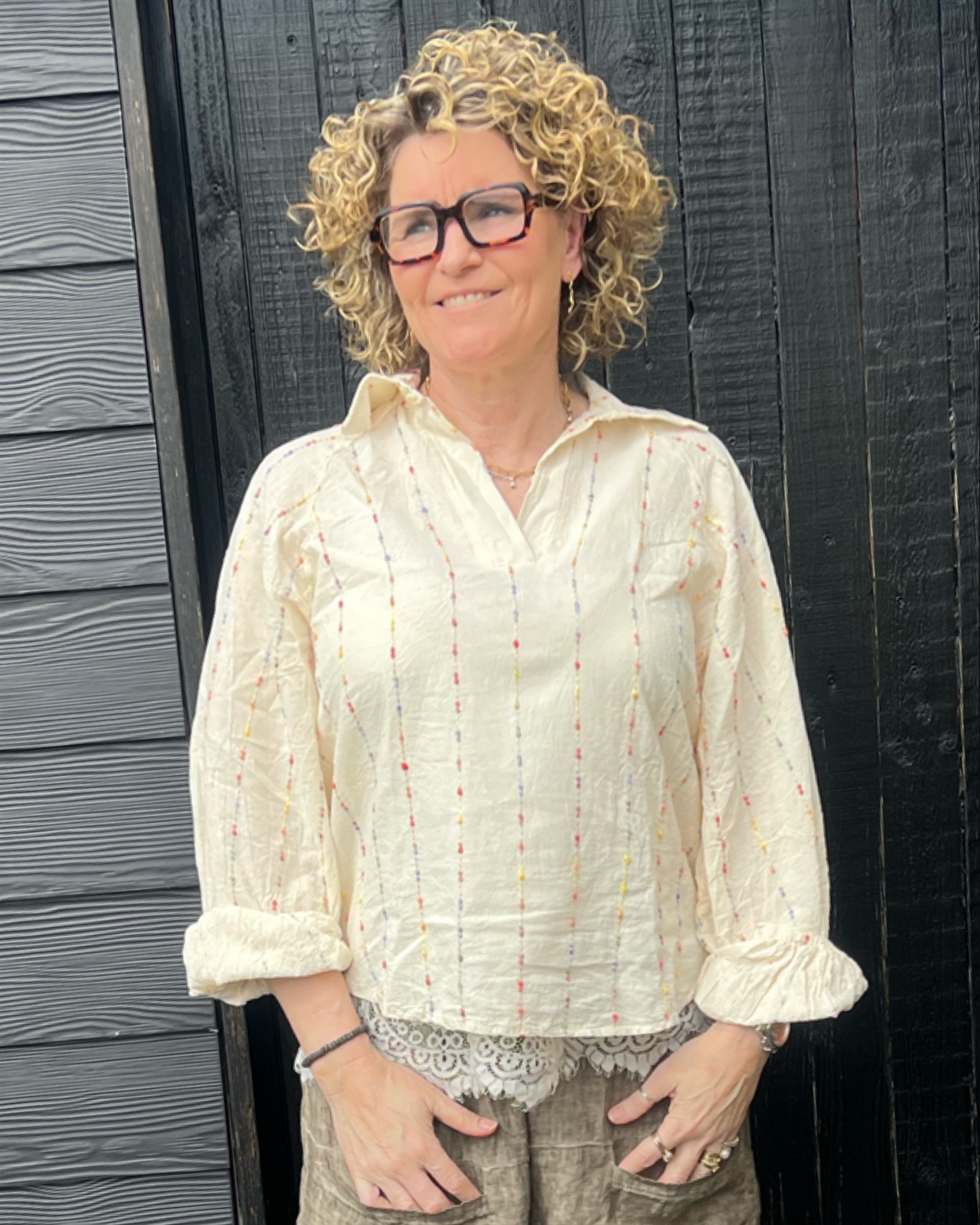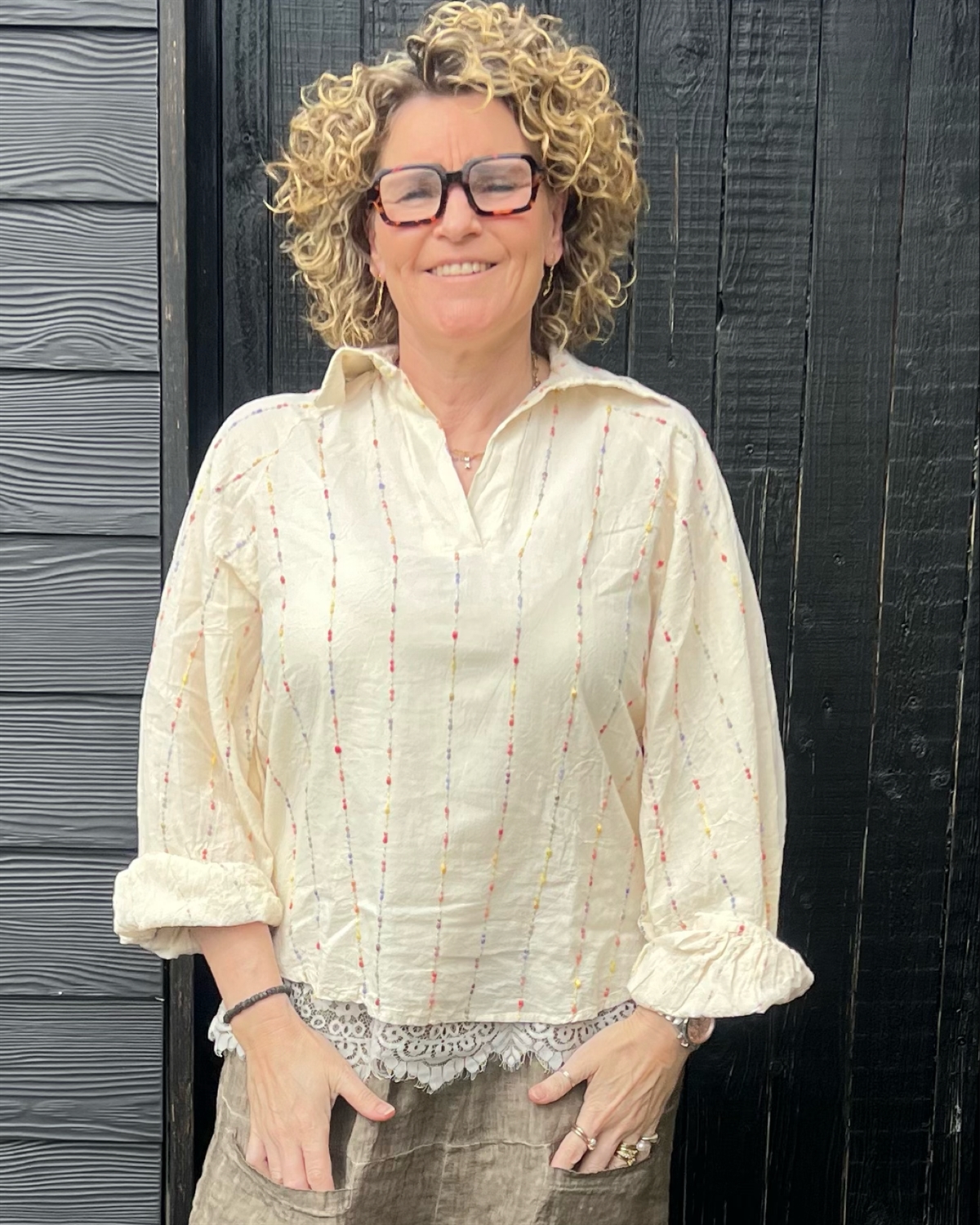 Bluse fra Cabana Living med farvet effekt i stoffet.