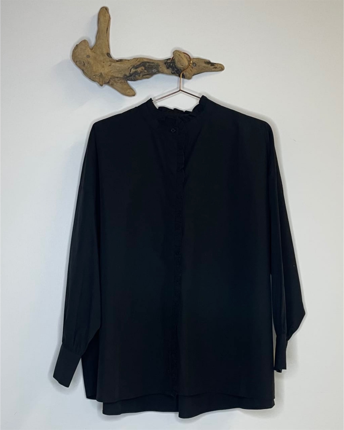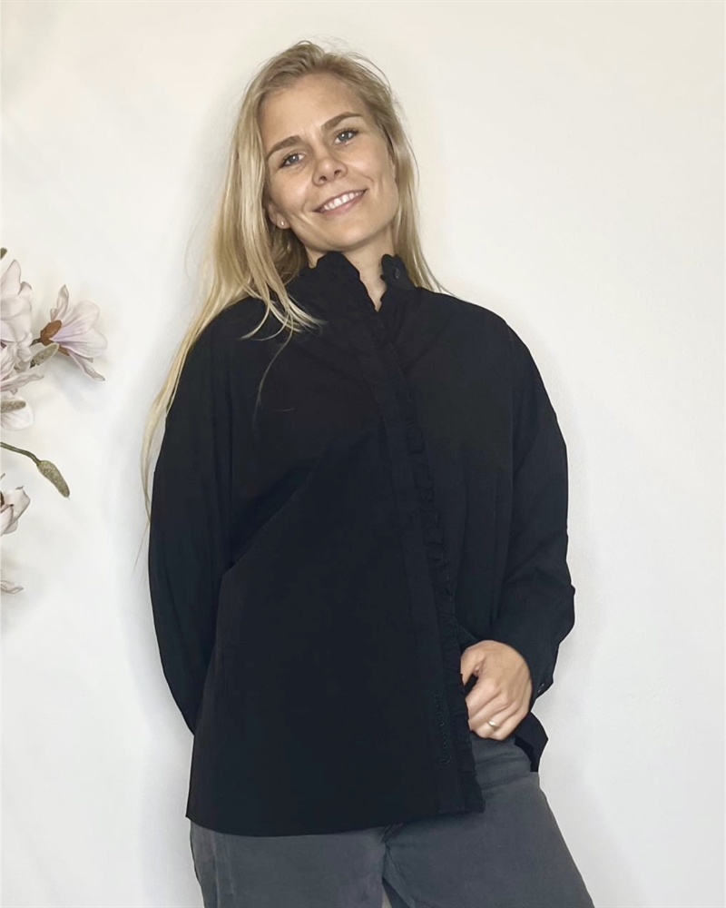 Smuk skjorte med flæse detalje i hals og ned langs skjorten fra Cabana Living.