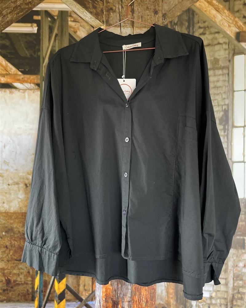 Skøn oversized skjorte fra Cabana Living. Skjorten har en brystlommer og alm skjorte flipper samt v.-hals.