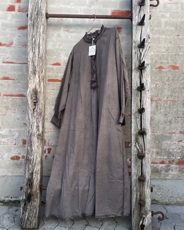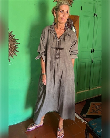 Skøn bomulds kjole fra Cabana Living med knapper og flæsekrave - bygget over Virginia skjorten. Kjolen er syet af 2 lag stof og sluttes af med rå kant i bunden.