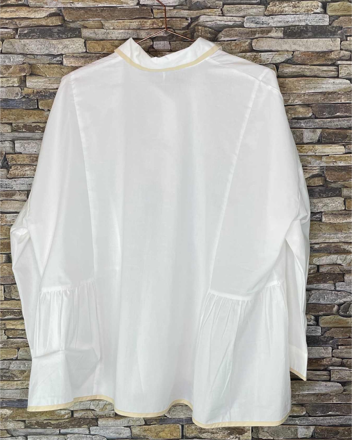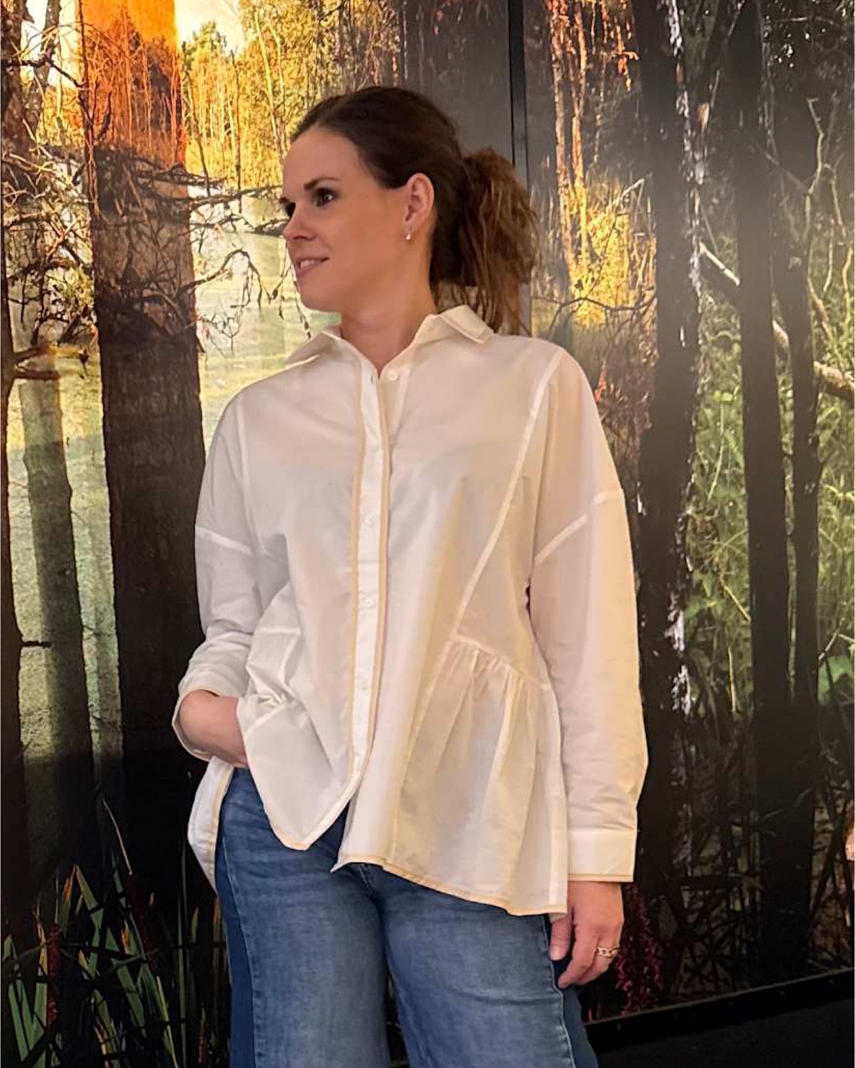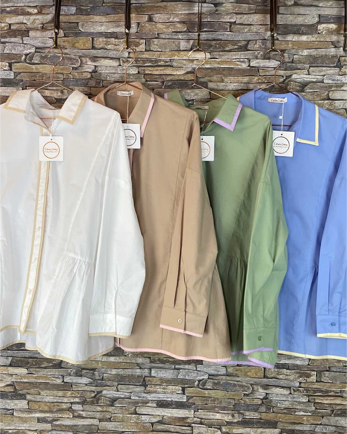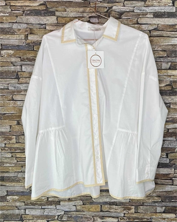 Smuk skjorte fra Cabana Living. Skjorten er rummelig og har kontrastfarve på på krave, manchet samt på stolpen. Skjorten har endvidere så læg ved hoften.