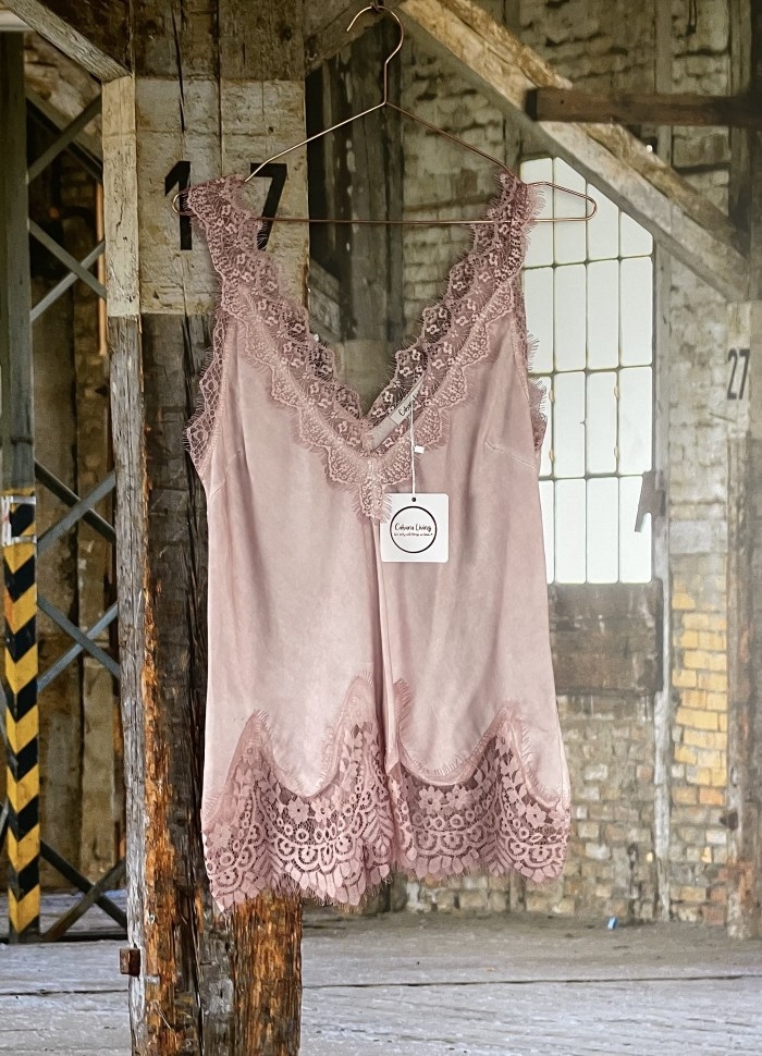 Top i vasket viskose med blonde stropper og blondekant i bund fra Cabana Living. Så SMUK