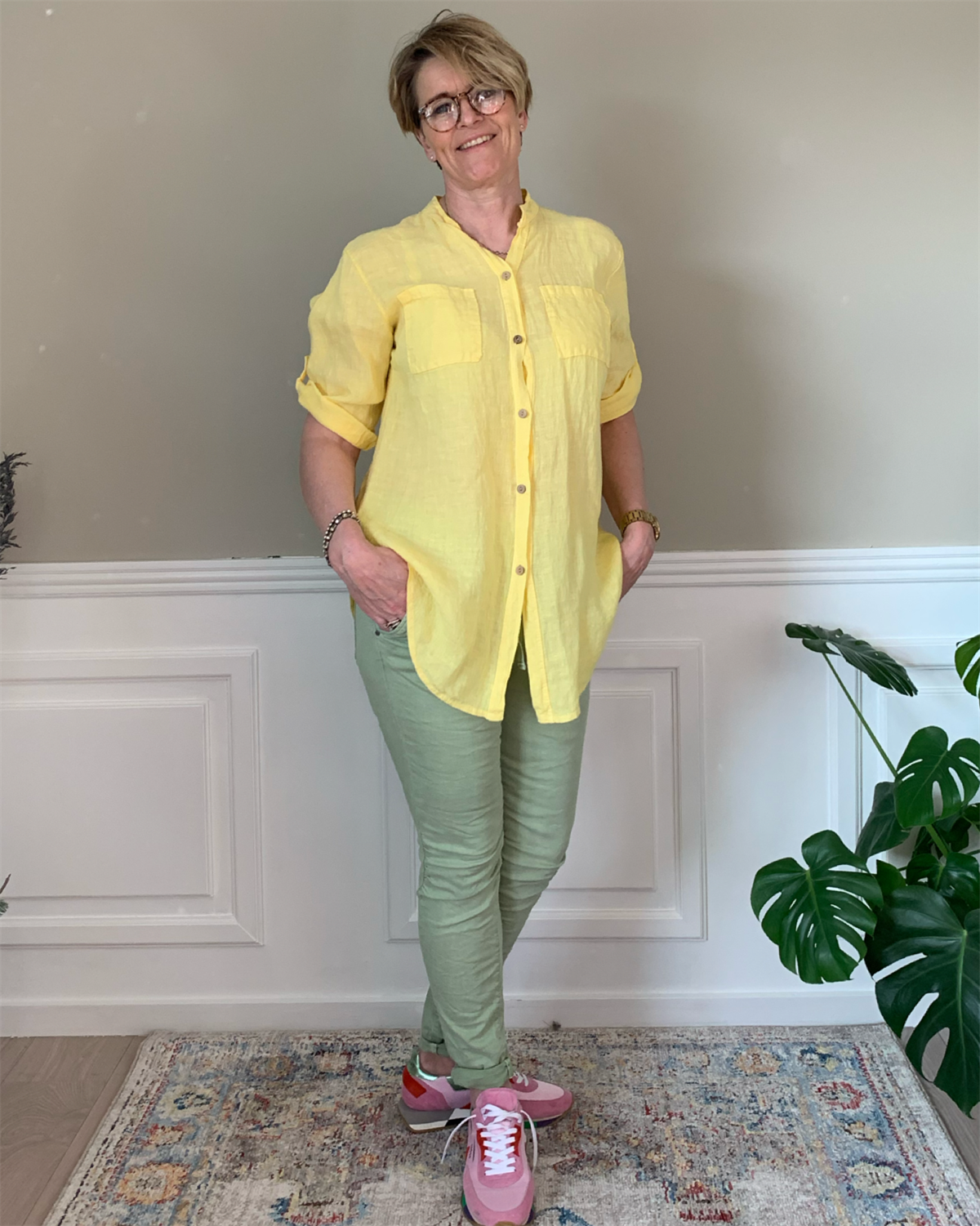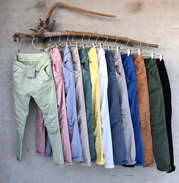 Skøn buks fra Cabana Living med stretch. Buksen har snøre i taljen og skrålommer foran. Hvis du svinger mellem 2 størrelser gå en størrelse op. De er så behavelige at have på :-) Modellen hed før Oda