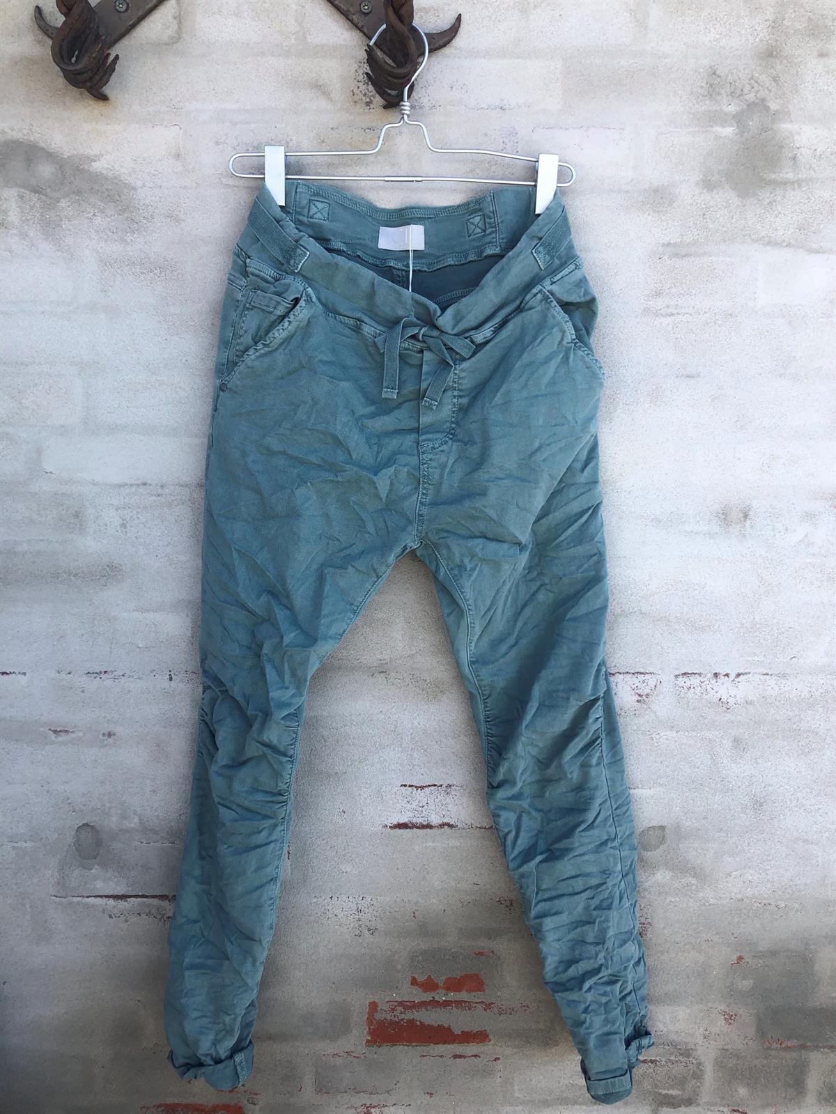 Skøn buks fra Cabana Living med stretch. Buksen har snøre i taljen og skrålommer foran. Hvis du svinger mellem 2 størrelser gå en størrelse op. De er så behavelige at have på :-) Modellen hed før Oda