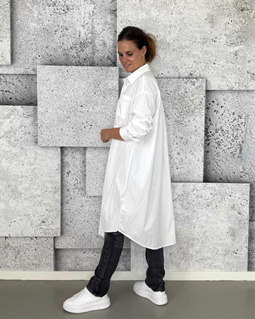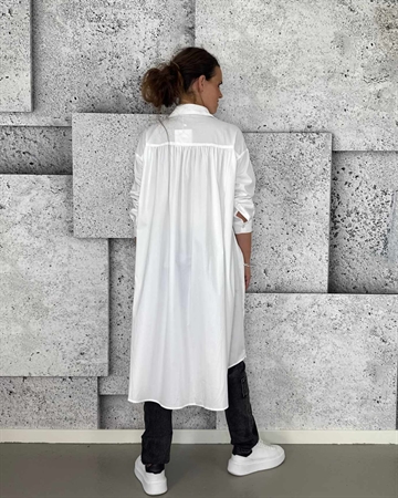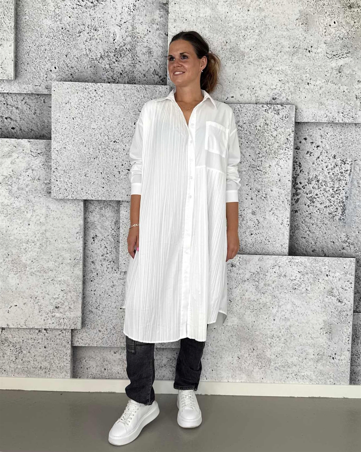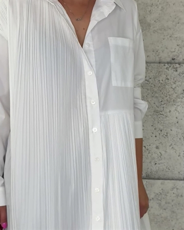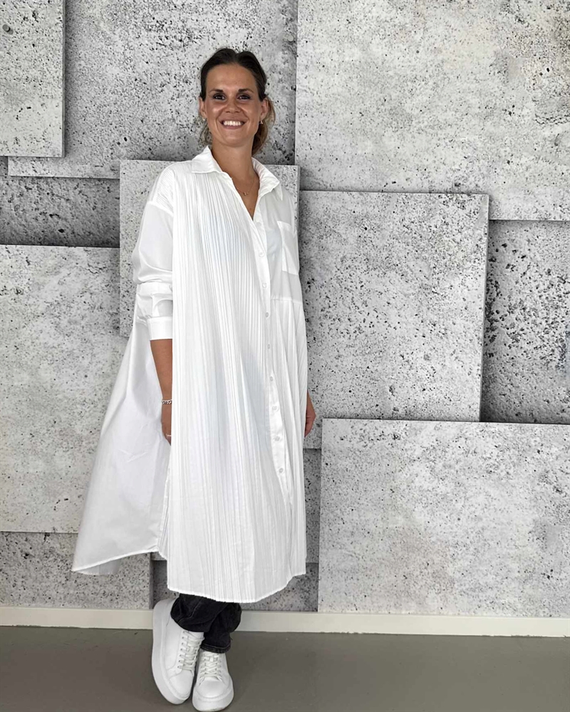 Oversize skjortekjole fra Cabana Living i bomulds poplin med stretch. Kjolen har plisse detaljer.