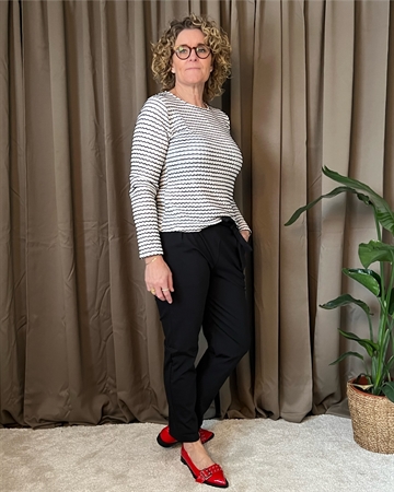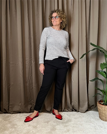 Blusen er lavet af en blanding af 95% polyester og 5% elastan, hvilket giver den en behagelig og strækbar pasform. Den har en flot kontrastdetalje, der tilføjer et stilfuldt touch til designet.
