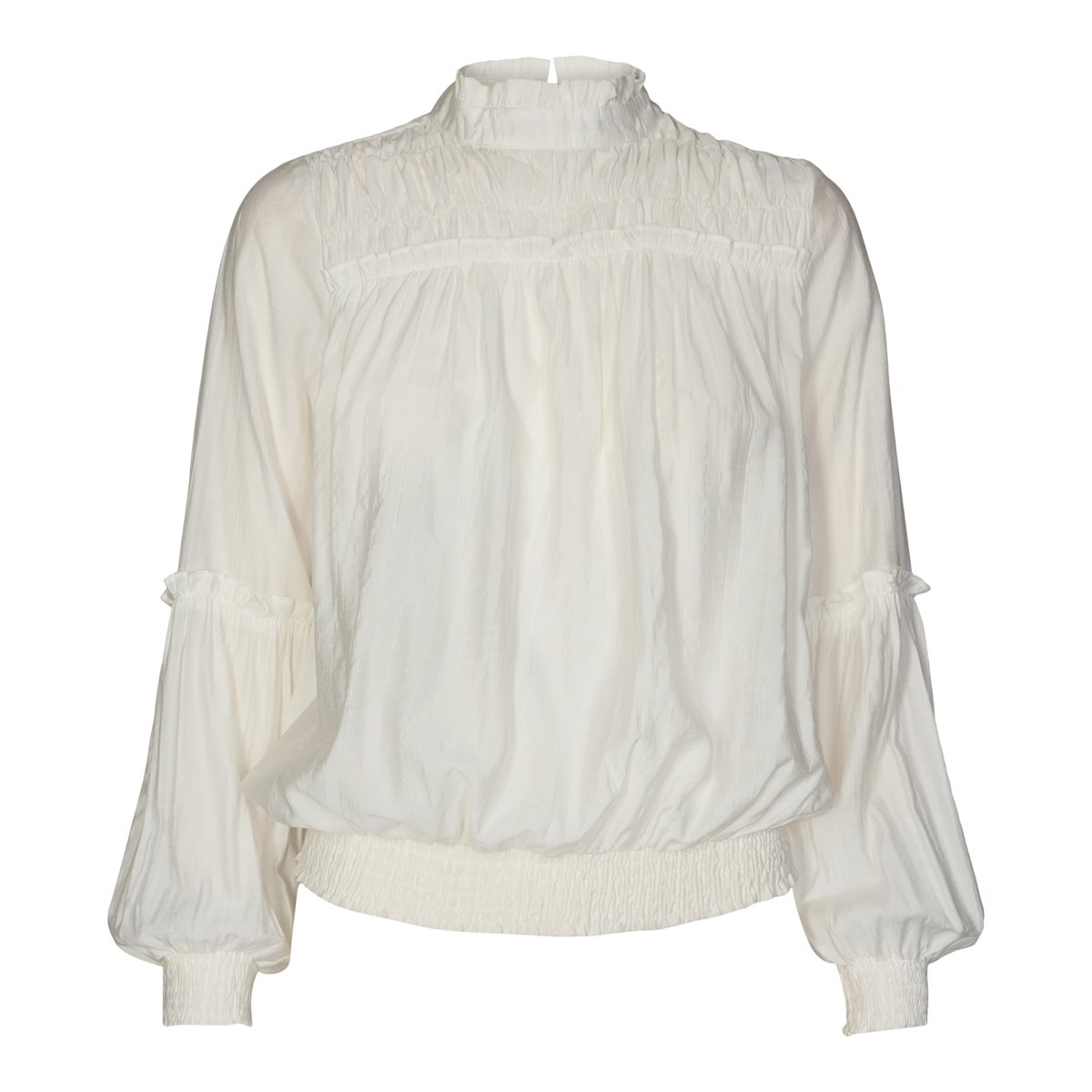 Lækker off white bluse fra Co´couture, den har smock foroven og elastik forneden og i ærmerne.