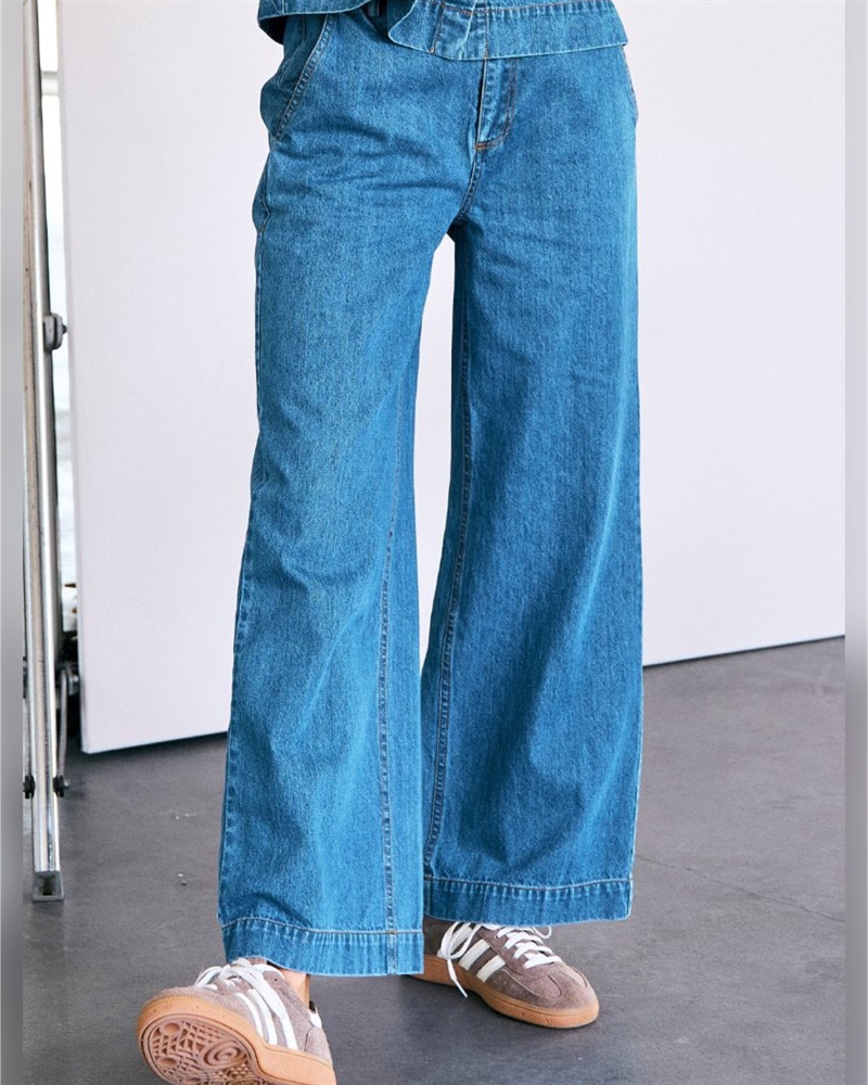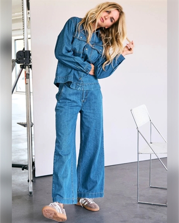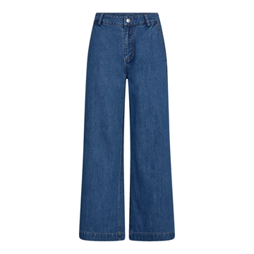 Trendy og stilfulde viddebukser fra Co’ Couture i en flot mørk denimvask. Bukserne har et højtaljet snit, som giver en flatterende pasform, og de brede ben skaber et elegant og moderne udtryk. Designet med klassisk lynlåslukning og knap foran samt diskrete baglommer, der fuldender det sofistikerede look. Perfekte til både hverdagsbrug og mere formelle anledninger – style dem med en skjorte eller strik for et chikt outfit. Et must-have i enhver garderobe!