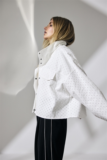 Elegant oversized jakke fra Co’Couture i en klassisk hvid farve. Jakken er designet med et smukt hulmønster, der giver et feminint og unikt udtryk. Den rummelige pasform gør jakken ideel til lag-på-lag styling og skaber et afslappet, moderne look. Bemærk, at jakken er stor i størrelsen, så overvej at gå en størrelse ned for et mere tætsiddende fit. Perfekt til både hverdag og festlige anledninger!