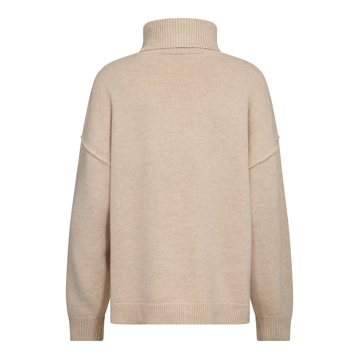 Stilren og oversized strik fra Co'Couture i en smuk grå nuance. Designet med en ribstrikket rullekrave og sænkede skuldre, der giver et afslappet og moderne udtryk. Ærmerne er fremhævet med dekorative udvendige syninger, og de korte slidser i siderne samt den lidt længere længde bagpå skaber et balanceret og elegant look.