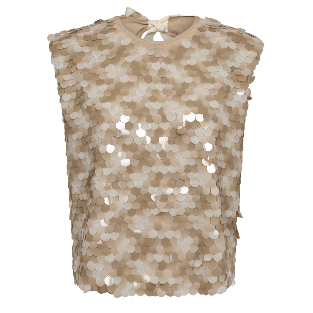 Gør indtryk med denne elegante og glamourøse top fra Co' Couture. Toppen er designet i en smuk champagnefarve og dækket af glitrende pailletter, der tilfører et eksklusivt og festligt udtryk. Den klassiske, normale pasform sikrer både komfort og stil, så du kan bære den hele dagen og aftenen.