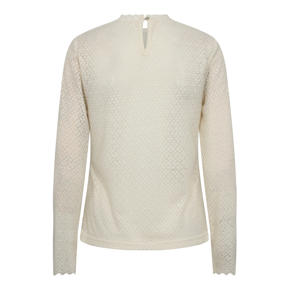 Feminin og elegant bluse fra Co'Couture, perfekt til enhver lejlighed. Blusen er lavet i en blød, let transparent vævet kvalitet med et smukt, detaljeret mønster. Den har en opretstående krave med fin tungekant og en slids i nakken, der lukkes med en lille knap for et sofistikeret look. De lange ærmer er afsluttet med tungekanter, som tilføjer ekstra finesse. Style den som den er med en enkel top under, eller brug den som et delikat lag under en jakke. En tidløs tilføjelse til din garderobe, der kombinerer femininitet og elegance!