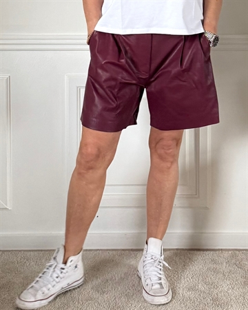 Eksklusive skindshorts fra Co'Couture i en smuk bordeaux nuance. Shortsene er designet med elegante læg foran, der giver et sofistikeret og moderne udtryk. Lavet i blødt og lækkert skind, som sikrer både komfort og et luksuriøst look. Perfekte til at style med en klassisk skjorte eller en chunky strik for et stilfuldt outfit – uanset om det er til hverdag eller en aften i byen. Et tidløst must-have til garderoben!