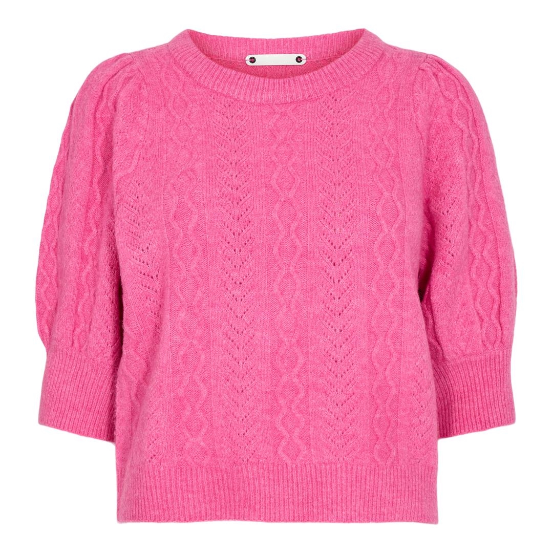 Smuk kortærmet hulmønstret strik bluse fra Co'Couture. Strikken har rund hals og korte ærmer med et lille puf. Style den til et par pæne bukser eller et par jeans.