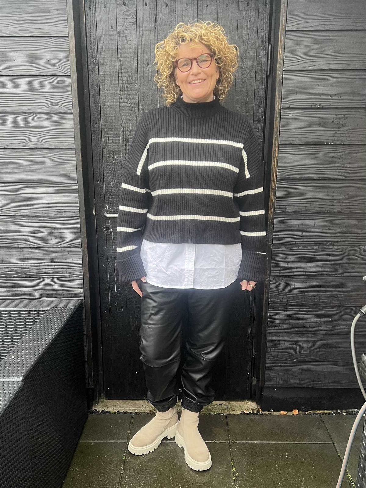 Lækker strikbluse fra Co Couture i sort med hvid stribe
