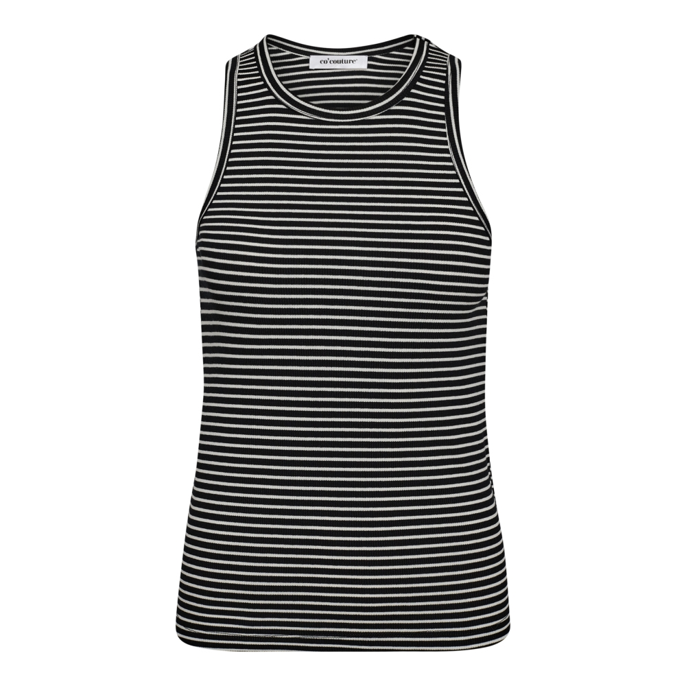 Designet af CO´ COUTURE, er denne top fremstillet med omhu og kvalitet. Den har et flot stribet mønster i sort og hvid, der tilføjer et moderne touch til dit outfit. Med sin ribstrikkede tekstur og behagelige pasform er denne top perfekt til både hverdagsbrug og festlige lejligheder.