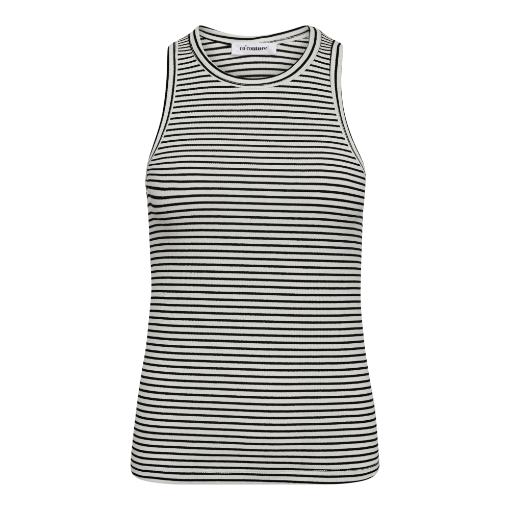Designet af CO´ COUTURE, er denne top fremstillet med omhu og kvalitet. Den har et flot stribet mønster i sort og hvid, der tilføjer et moderne touch til dit outfit. Med sin ribstrikkede tekstur og behagelige pasform er denne top perfekt til både hverdagsbrug og festlige lejligheder.