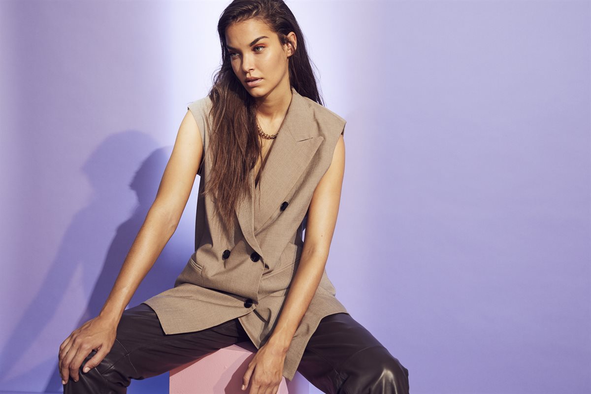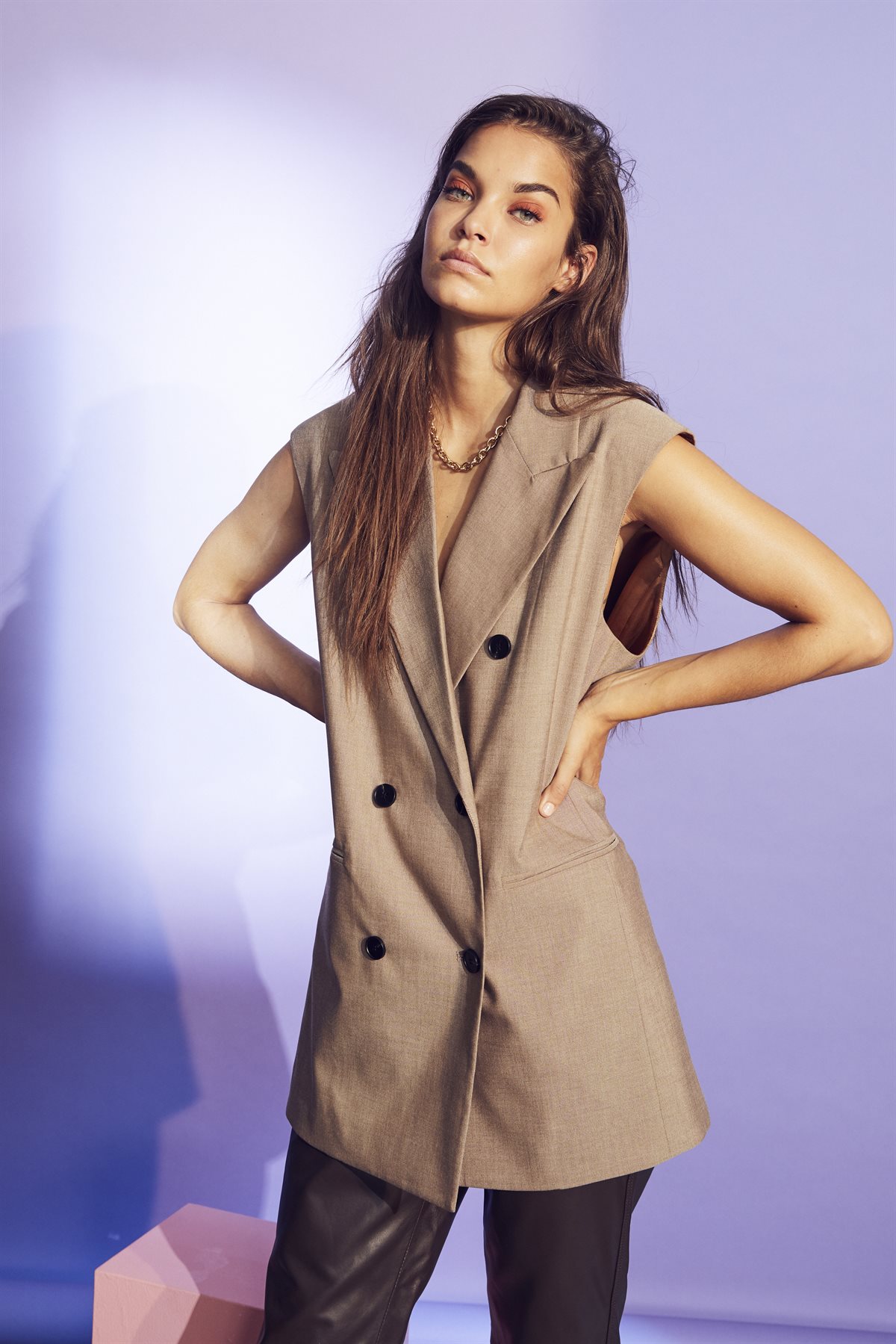 Smuk klassisk vest fra Co Couture, som har cool oversize pasform. Vesten er dobbeltradet med flotte store knapper og har klassisk revers. Dertil er der en slids bagpå i midten.