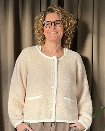 Cardiganen har også fine kanter og smukke knapper langs fronten.