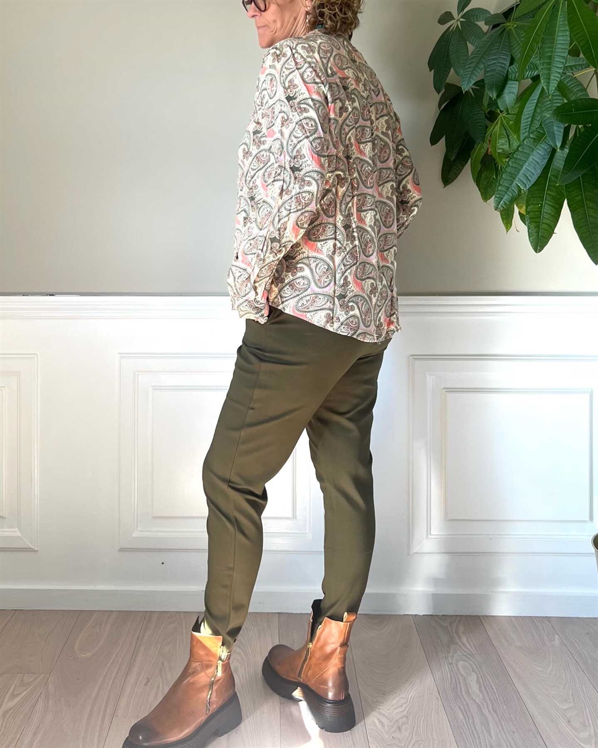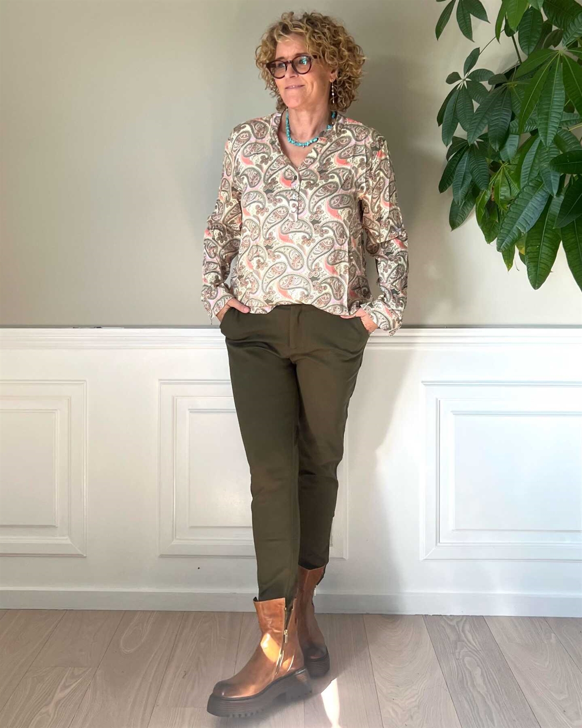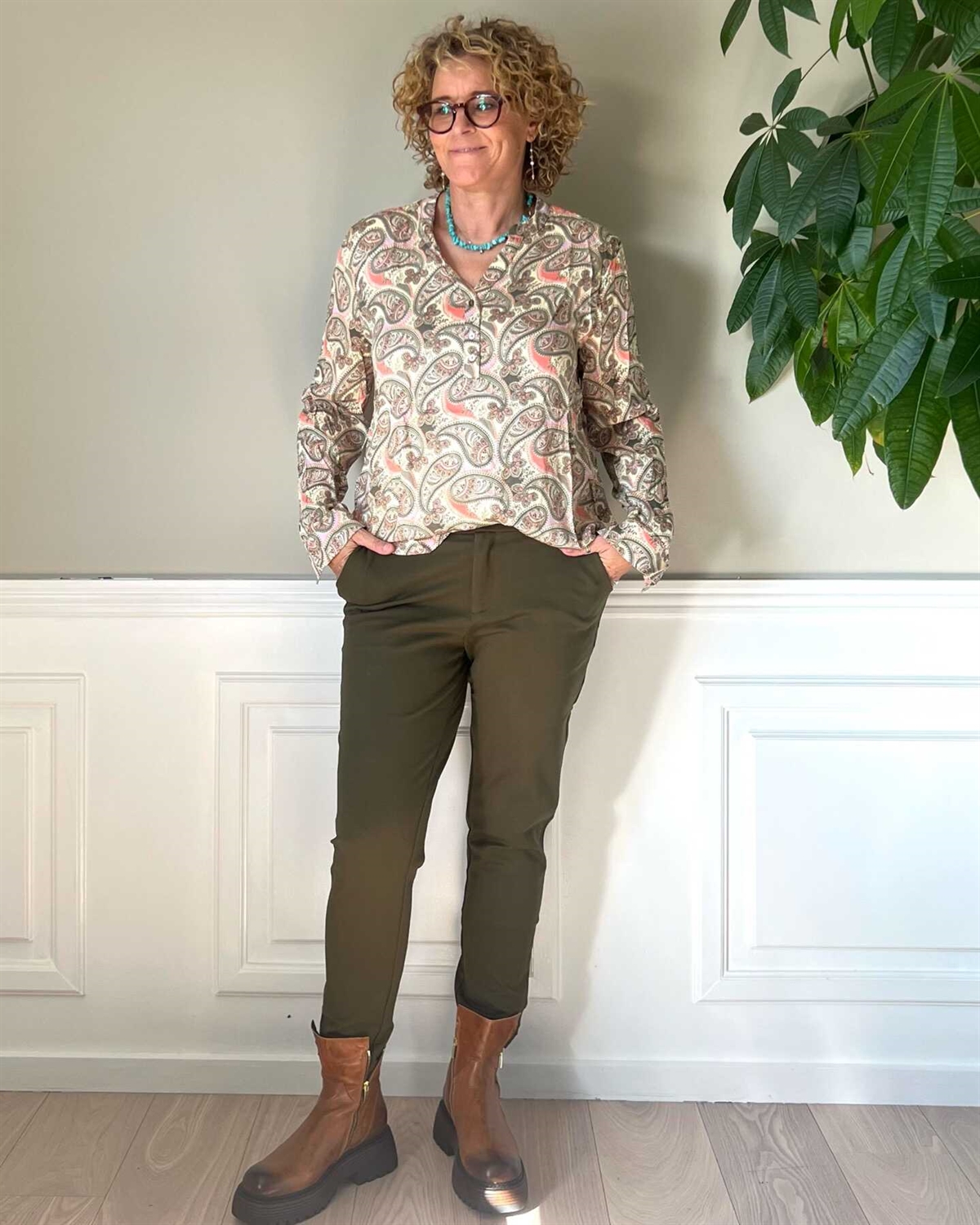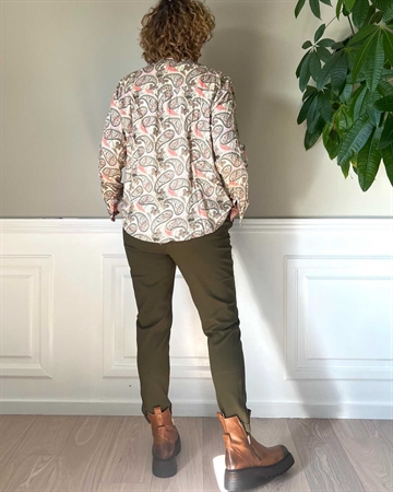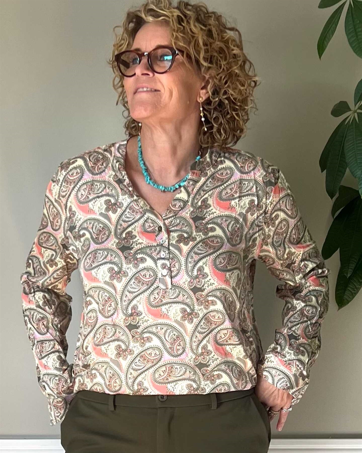 Smuk løstsiddende bluse fra Costamani i et smukt paisley print. Blusen har v-hals, og kan knappes yderligere op.