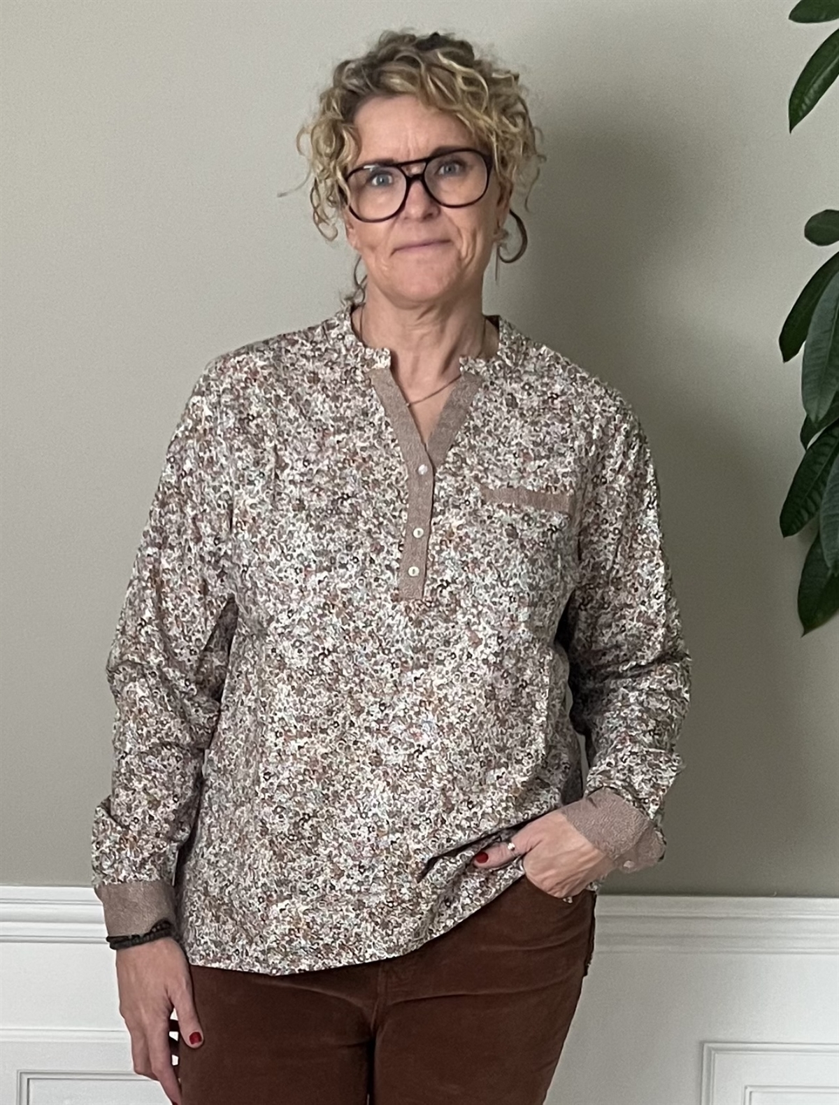 En smuk bluse i en skøn pasform. Alma er vores velkendte model som er super flatterende. Blusen sidder ikke tæt, men har en smule plads. De simple detaljer bliver fremhævet af et andet print.