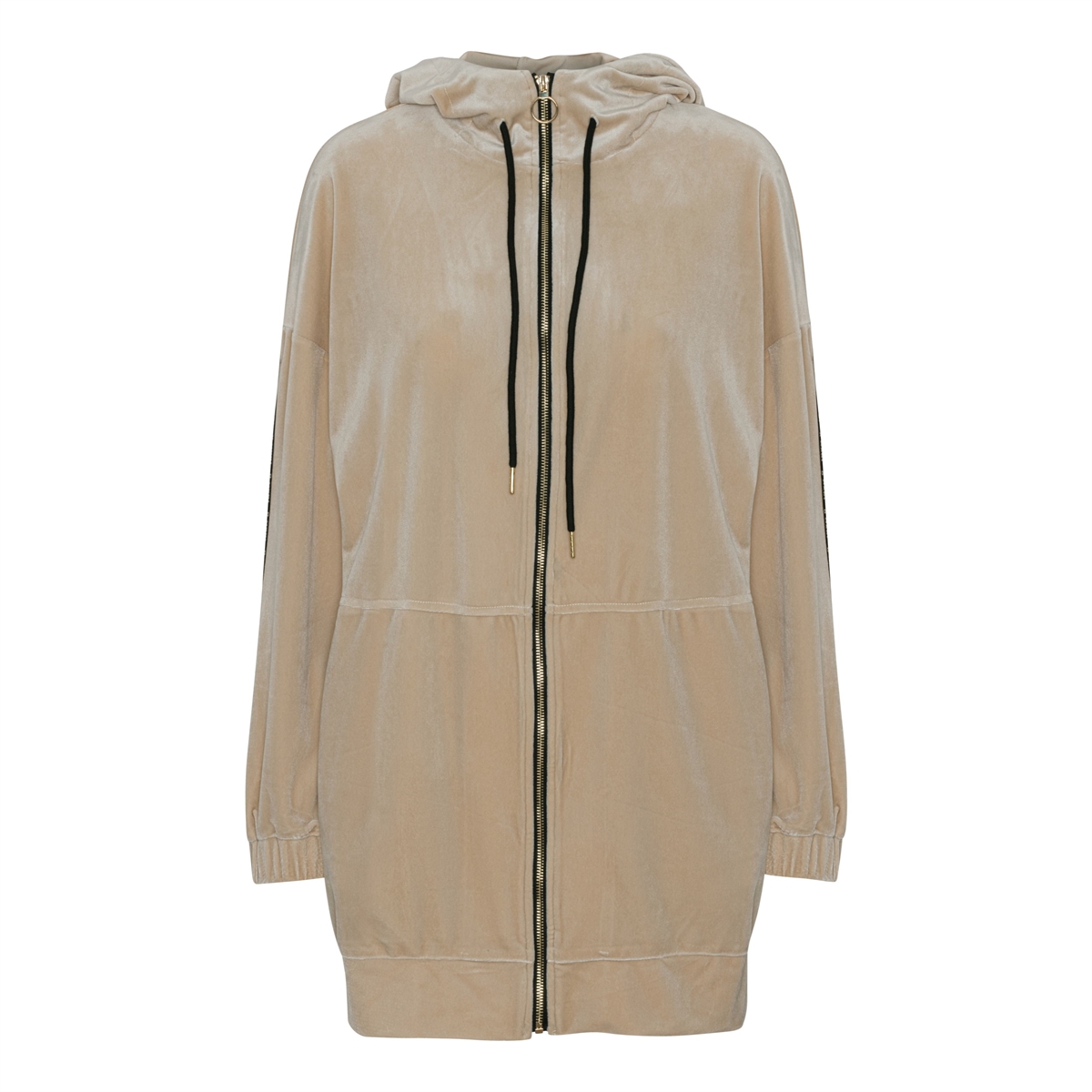 Denne lækre hoodie fra Costamani er lavet i den fineste sand farve med sorte mani detaljer. Hoodien er lang og går ned under numsen. Kvaliteten minder om en velour. Style den evt. åben med de matchende bukser.