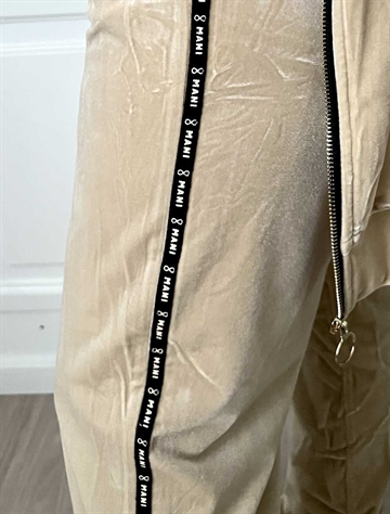 Det helt perfekte par joggers. Bukserne er lavet i en lækker velour. Bukserne har sorte mani detaljer ned langs benene samt sorte snørre i taljen.