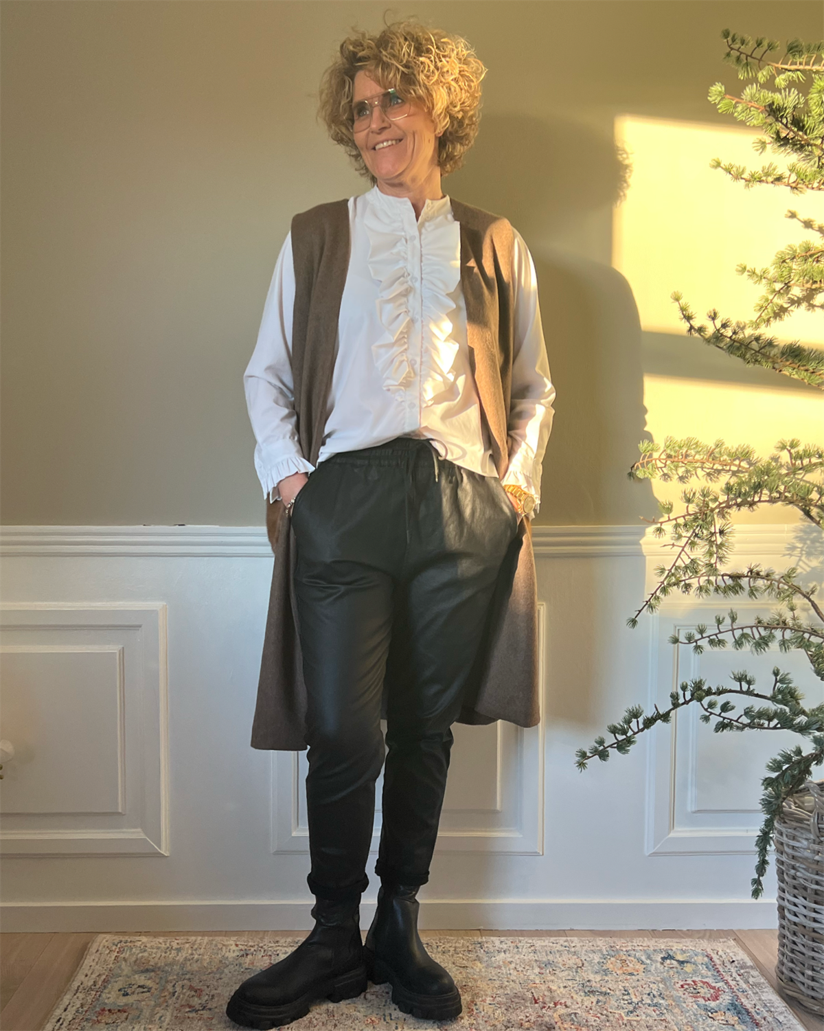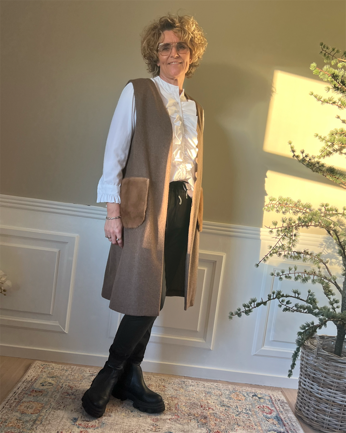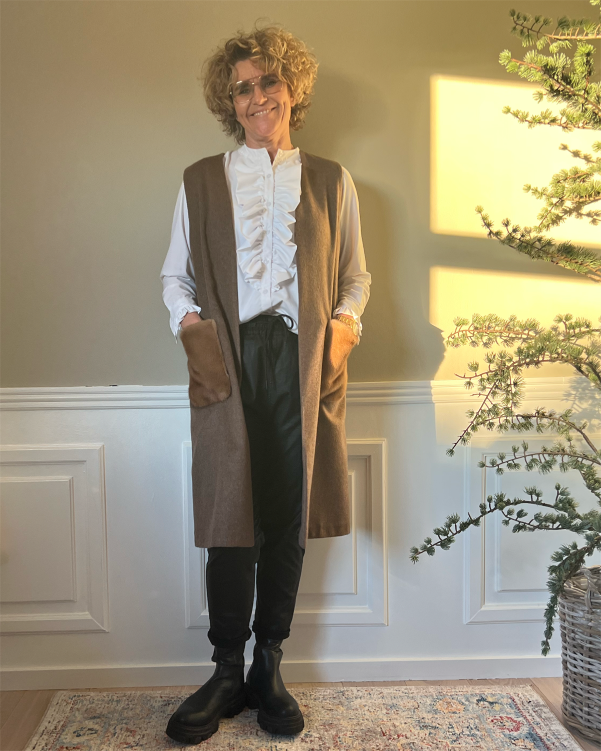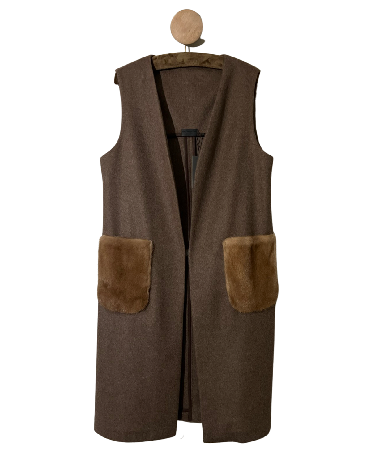 COSY CONCEPT FUR Vest Walnut med camel mink lomme