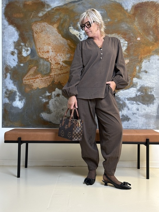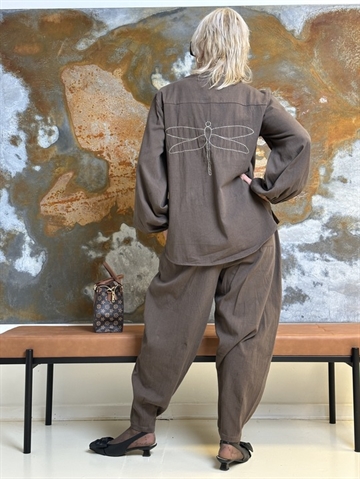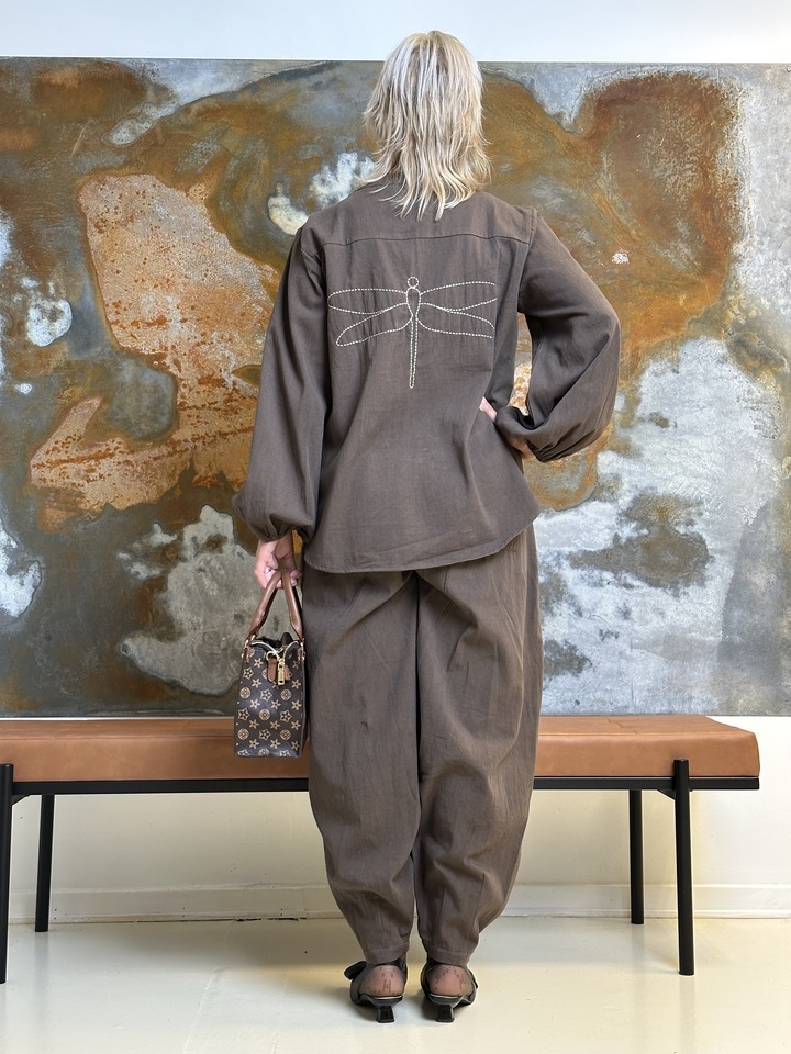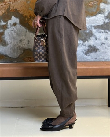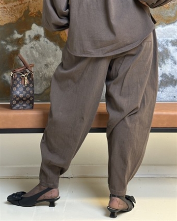 Den moderigtige barrel-buks i blød canvas har et afslappet, men stilfuldt snit med masser af vidde i lårene og en smallere afslutning ved anklerne. Modellen stumper let og giver et cool, moderne udtryk.