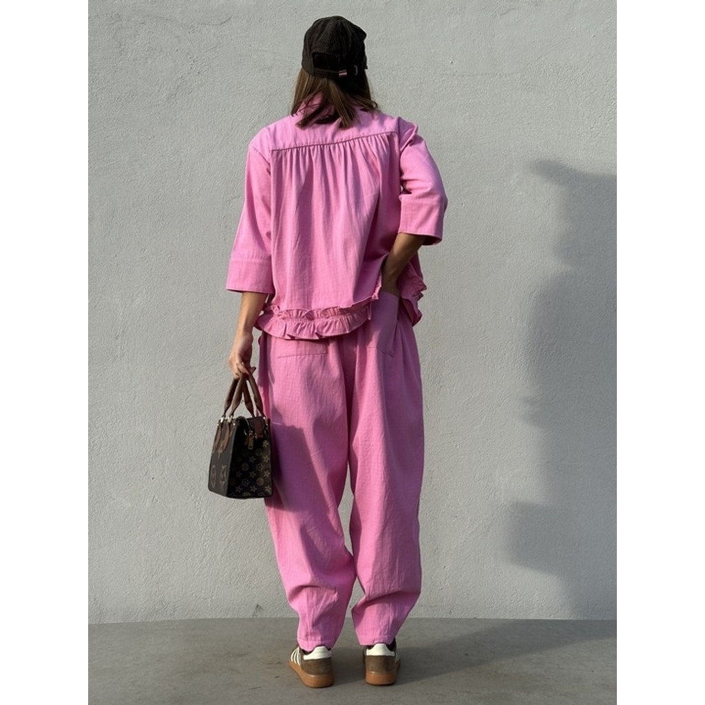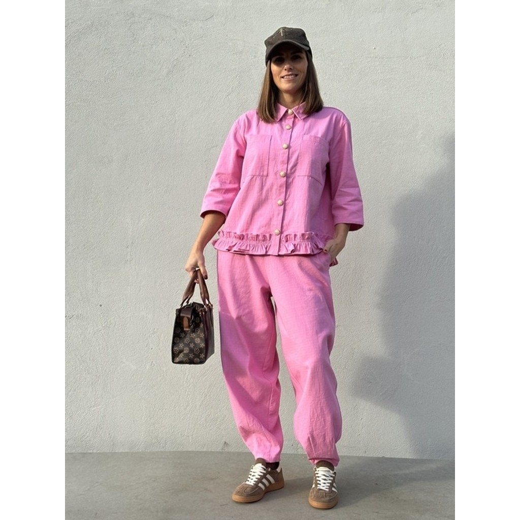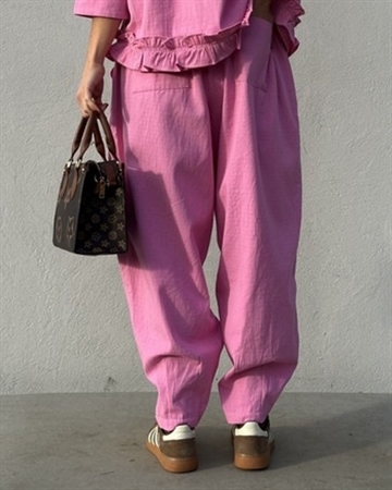 Den moderigtige barrel-buks i blød canvas har et afslappet, men stilfuldt snit med masser af vidde i lårene og en smallere afslutning ved anklerne. Modellen stumper let og giver et cool, moderne udtryk.