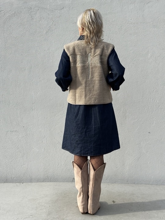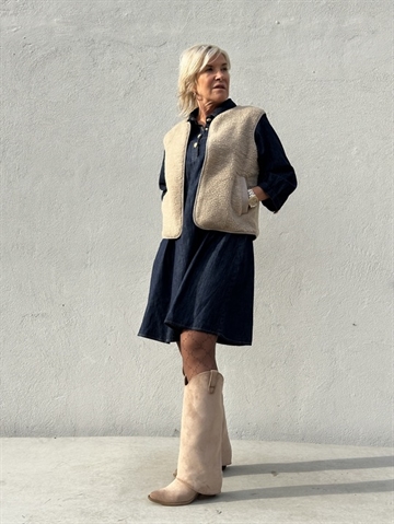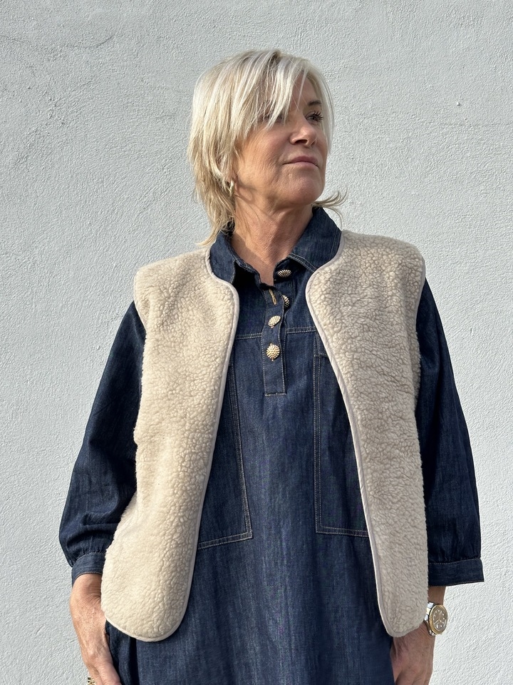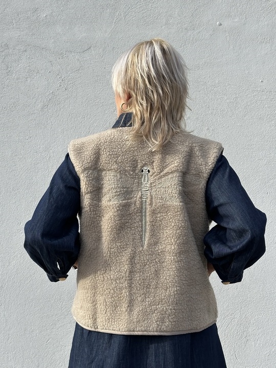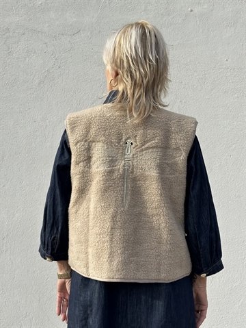 Kort teddyvest fra Gaspar med stort guld logo broderi på ryg.