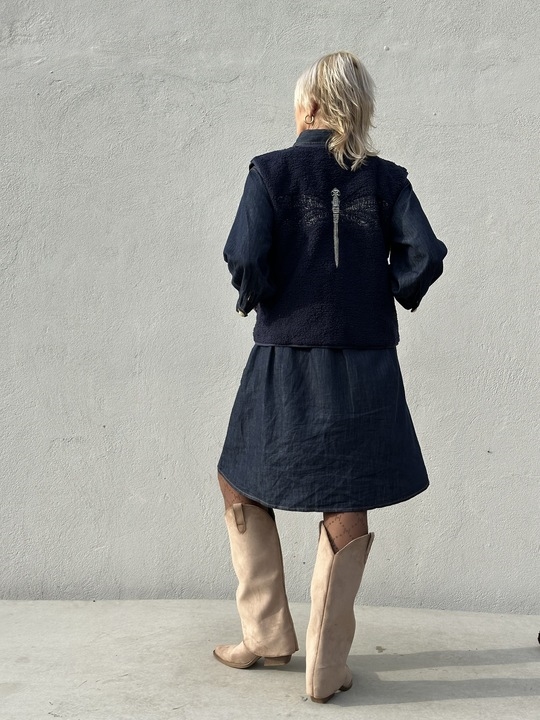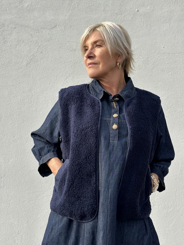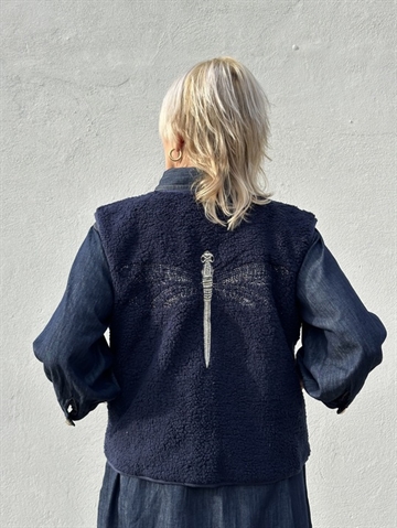 Kort teddyvest fra Gaspar med stort guld logo broderi på ryg.