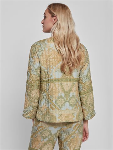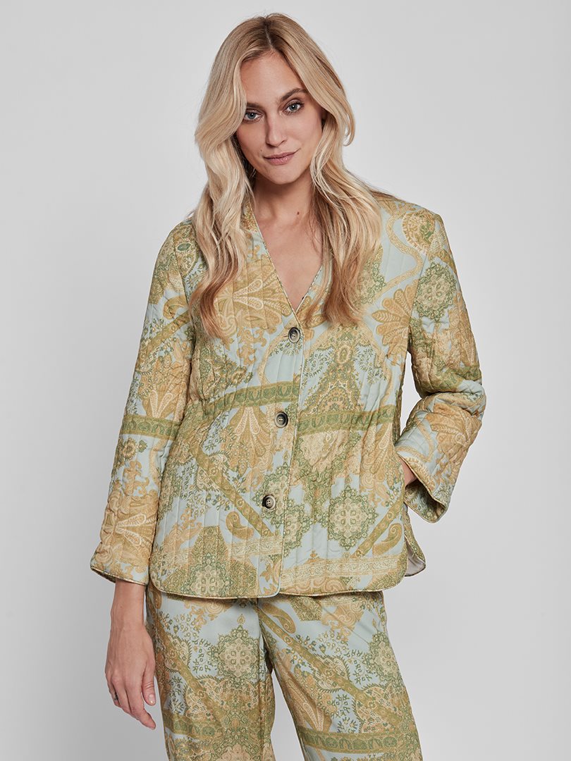 Flot quilted Holly jakke fra Gustav i en flot gul / grønne nuancer. Jakken har et fint print, lange ærmer og gennemgående knapper.