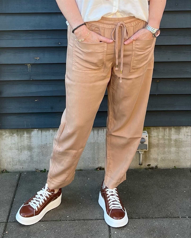 Lækre bukser fra Gustav med en moderne 7/8 længde og en afslappet silhuet. Bukserne har også en bred elastikkant med bindebånd.