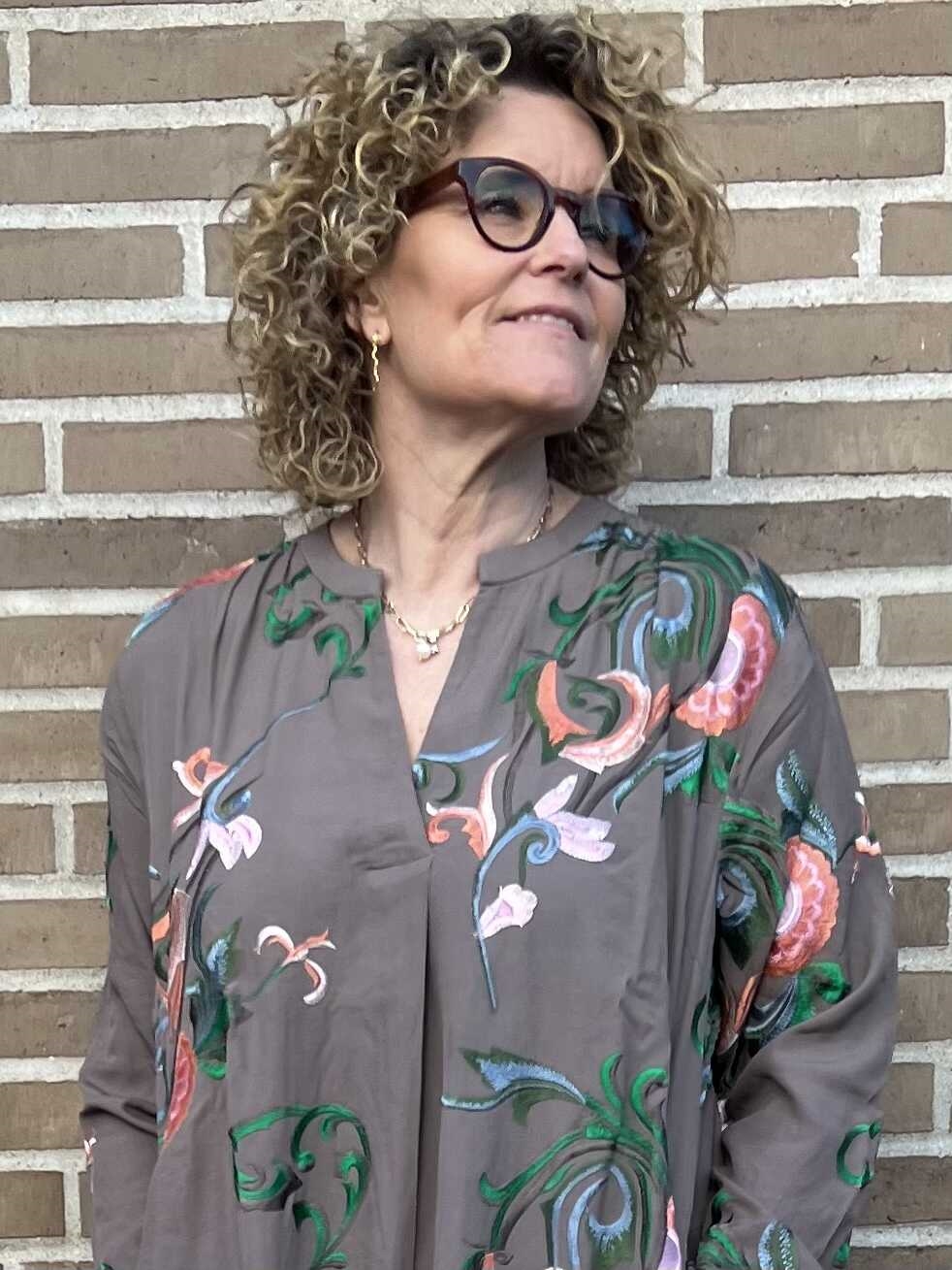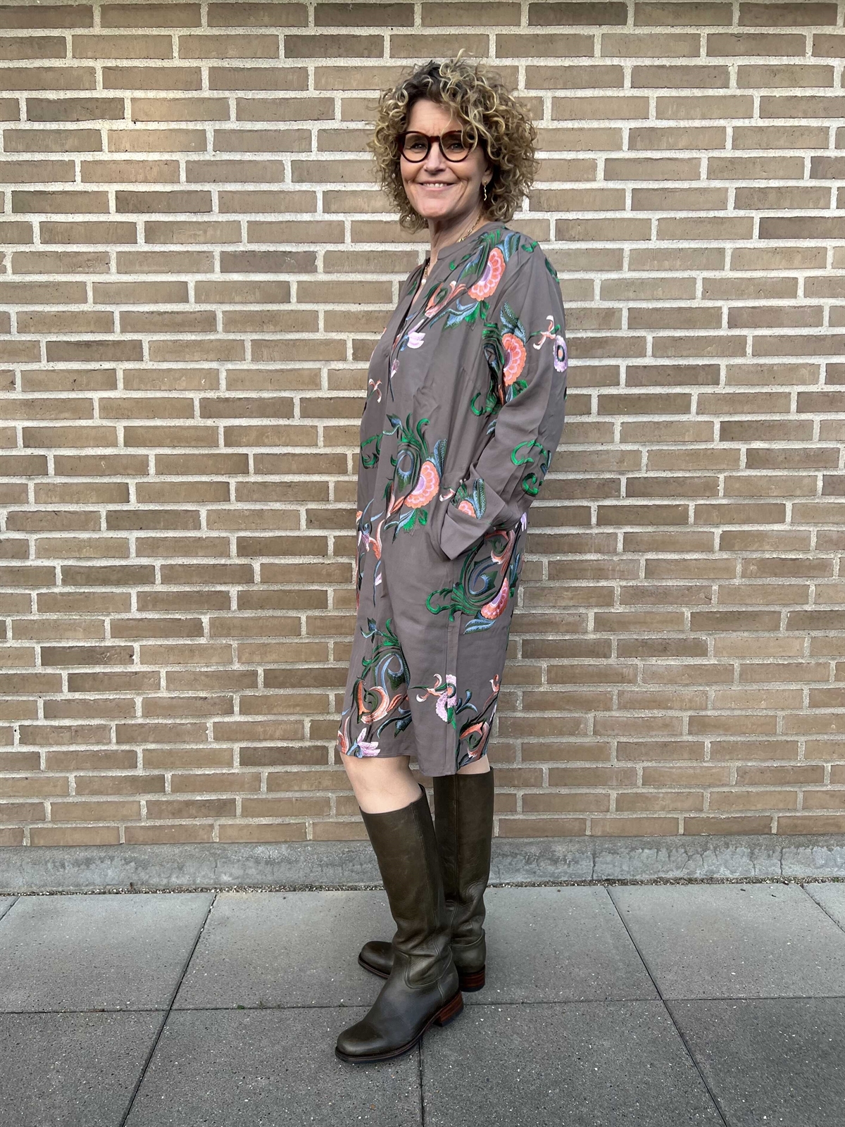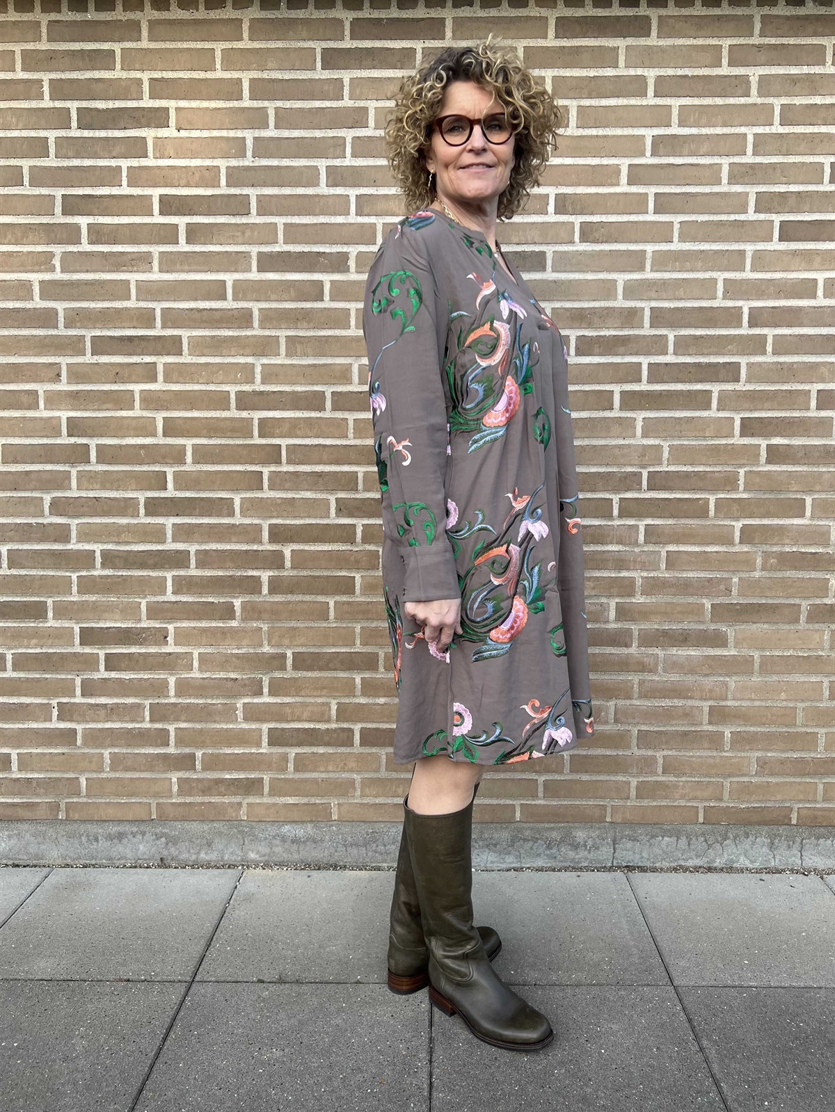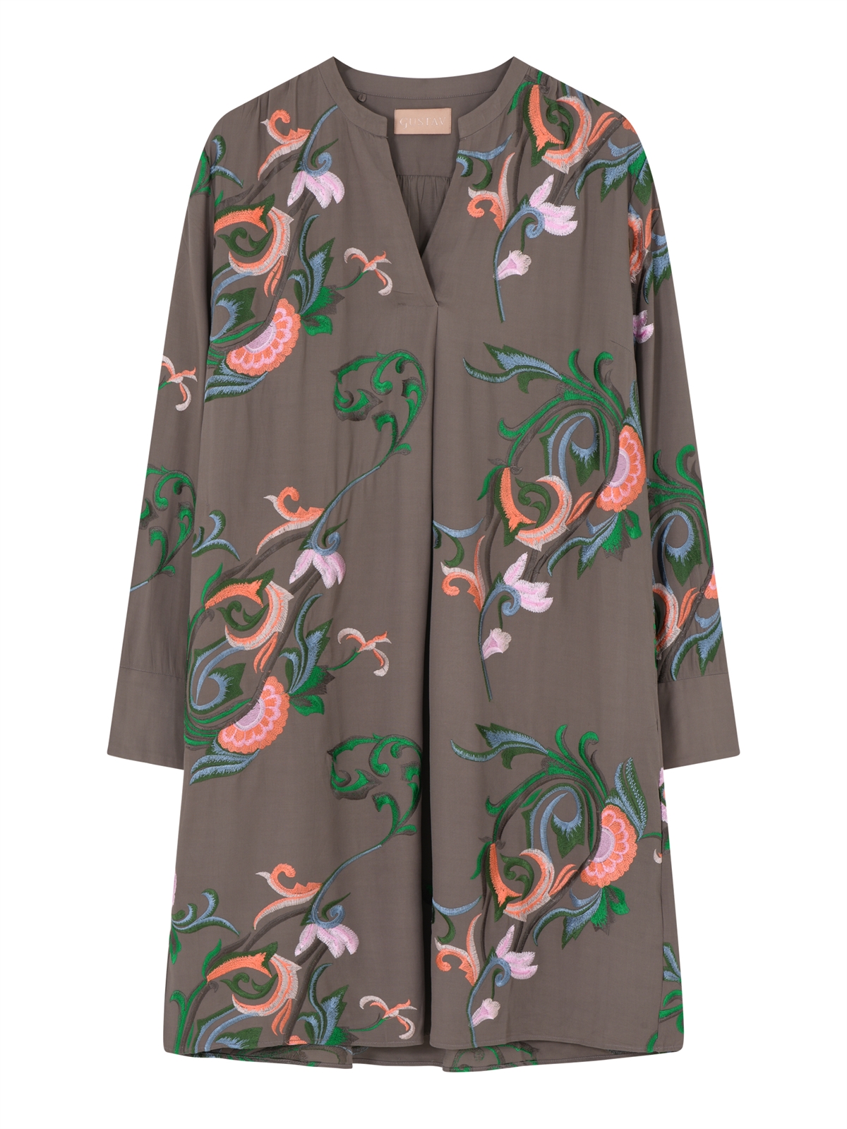 Den smukkeste kjole fra Gustav - med broderet mønster. Kjolen er den velkendte model Costa - Modellen er rummelig.