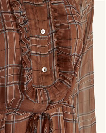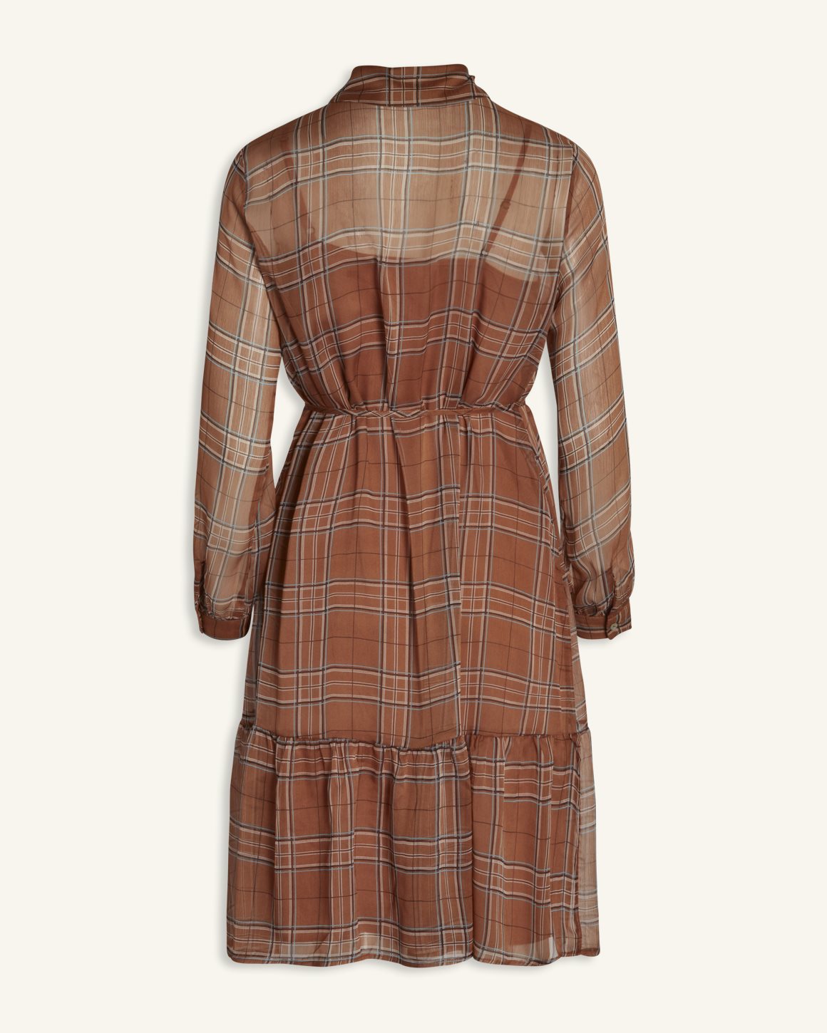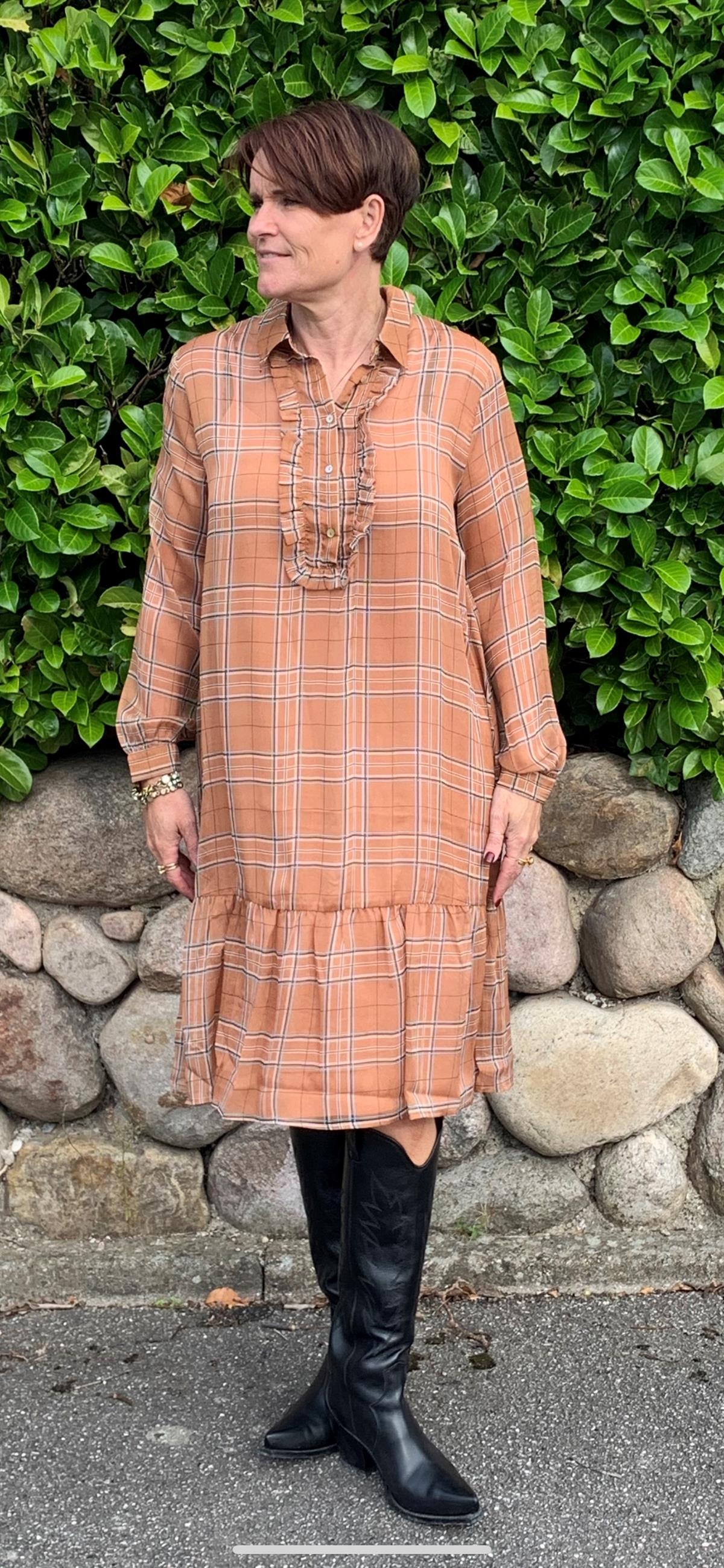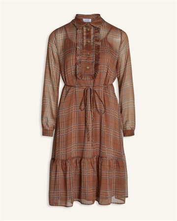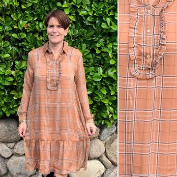 Klassisk ternet kjole med flæser, peplum og et aftageligt bælte i taljen. For: 100% viskose.  Style den med en høj støvle - se relaterede produkter.