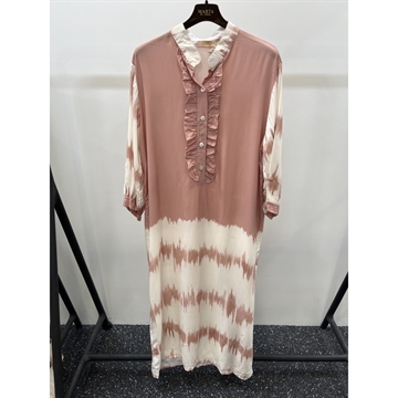 Skøn kjole fra Marta Du Chateau med et cool print. Kjolen har knapper ned til omkring taljen med fine flæsedetaljer omkring. Den har en v-halsudskæring og lange ærmer.