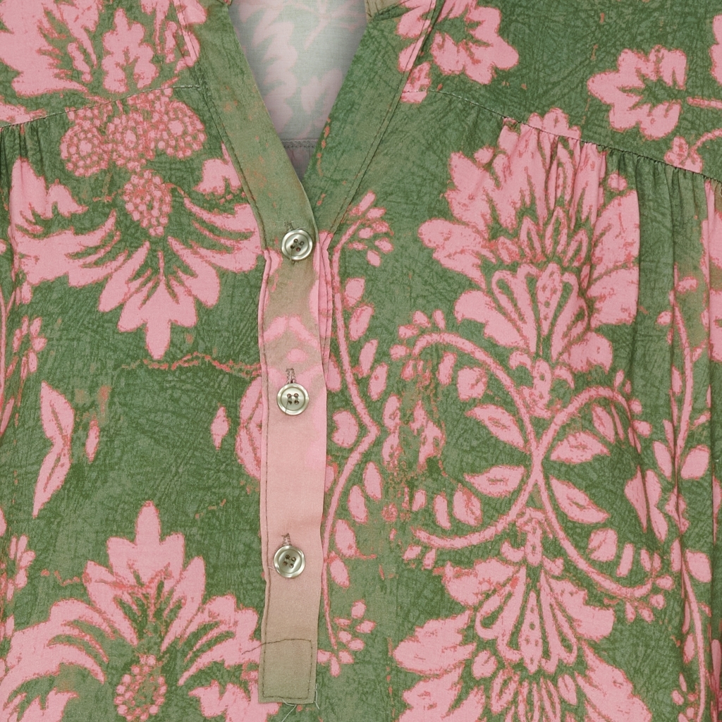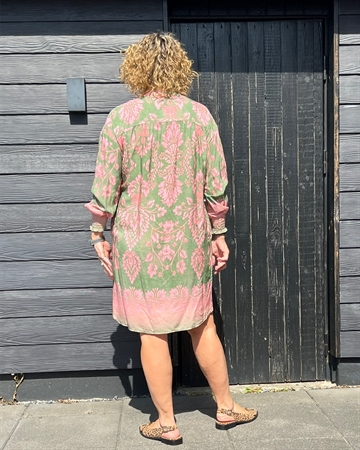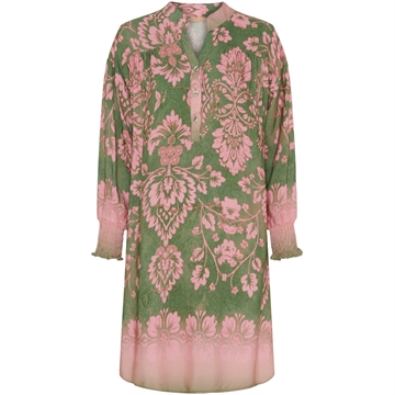 Smuk Marta kjole med udskæring med knapper og smock ved håndled.