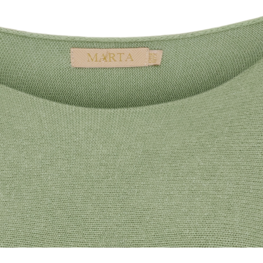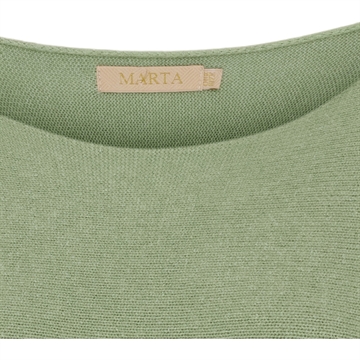 Blød og elegant strik fra Marta Du Chateau i en smuk, afdæmpet grøn nuance. Denne strikbluse har en løs og afslappet pasform med en bred rund halsudskæring og 3/4-ærmer, der giver et luftigt og feminint look.