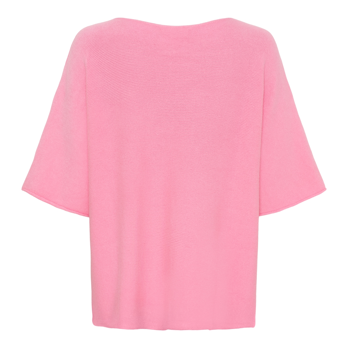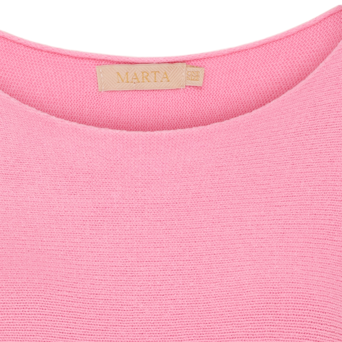 Lækker og blød strikbluse fra Marta Du Chateau i en smuk og frisk pink nuance. Blusen har en afslappet pasform, rund halsudskæring og elegante korte ærmer, der giver et let og luftigt udtryk.