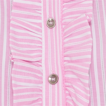 Feminin og elegant skjorte fra Marta Du Chateau i en smuk lyserød og hvidstribet kombination. Skjorten har en fin kinakrave og delikate flæsedetaljer langs knaplukningen, som giver et romantisk og sofistikeret look.