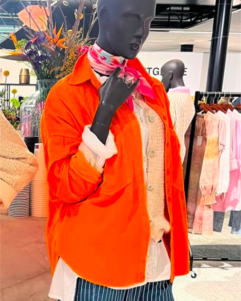 Trendy og komfortabel skjorte fra Marta Du Chateau i en flot, varm orange nuance. Skjorten er lavet i blød babyfløjl, der giver en behagelig følelse og et luksuriøst look.