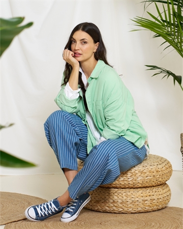 Elegant og feminin skjorte fra Marta Du Chateau i en smuk blød babyfløjl-kvalitet. Den fine mint farvet nuance tilfører et friskt og trendy look, der kan styles til både hverdag og fest.